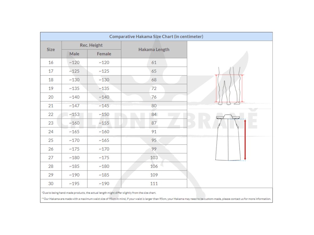 Model je určen především praktikujícím, kteří chtějí spolehlivou tréninkovou hakamu pro pravidelné cvičení a požadují rozumnou životnost i pohodlí. Dobře poslouží jako první hakama do dojo i jako pracovní kus na intenzivnější trénink. K dispozici je ve velikostech 26 a 28 (viz foto tabulky), přičemž je potřeba počítat s tím, že střih není vhodný pro osoby s obvodem pasu nad 95 cm.