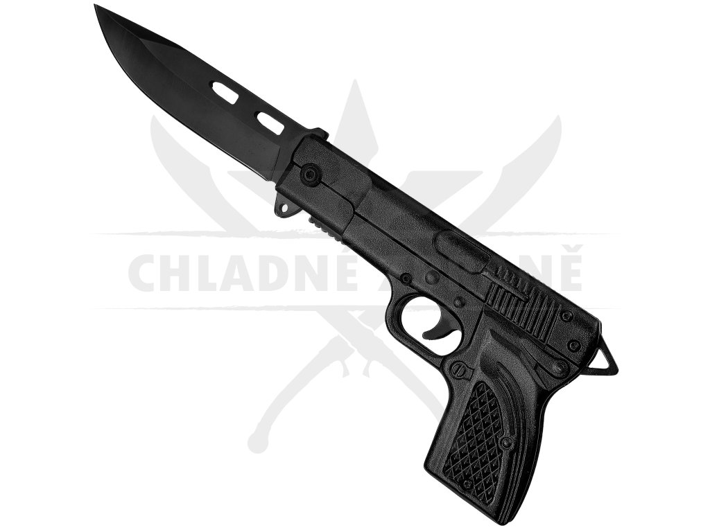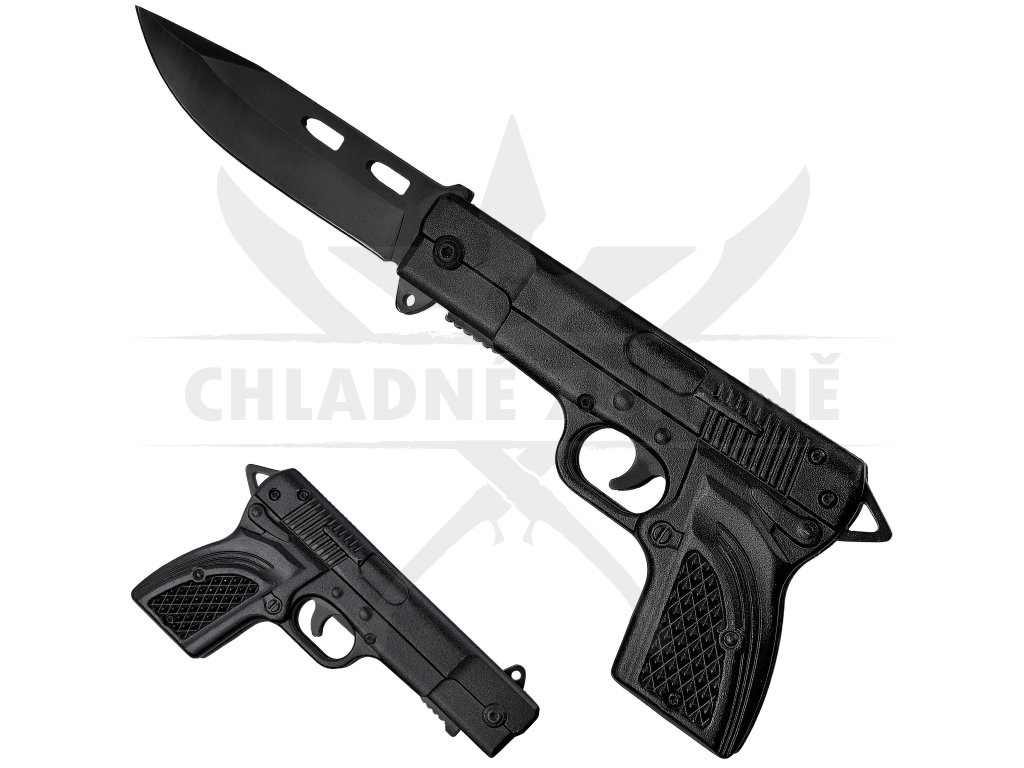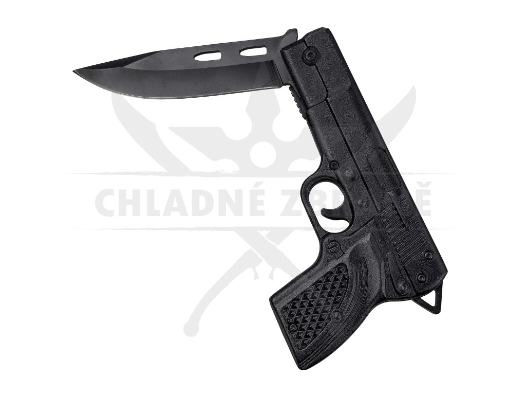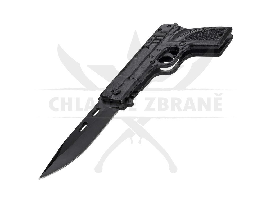 Tento originální zavírací nůž STEALTH WEAPON na první pohled zaujme svým neobvyklým designem, který připomíná pistoli. Kombinace netradičního vzhledu a praktické funkčnosti z něj dělá jedinečný kousek nejen pro každodenní nošení, ale i do sbírky pro všechny nadšence do zbraní a taktického vybavení.