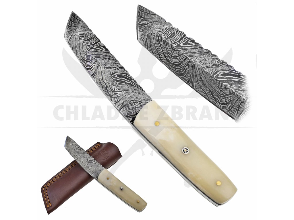 Damaškové tanto "BONE MASTER" s koženým pouzdrem