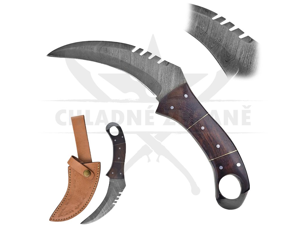 Damaškový karambit "CLAW OF ANCIENT STEEL" s koženým pouzdrem
