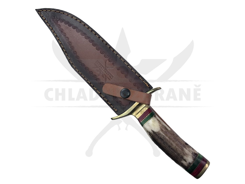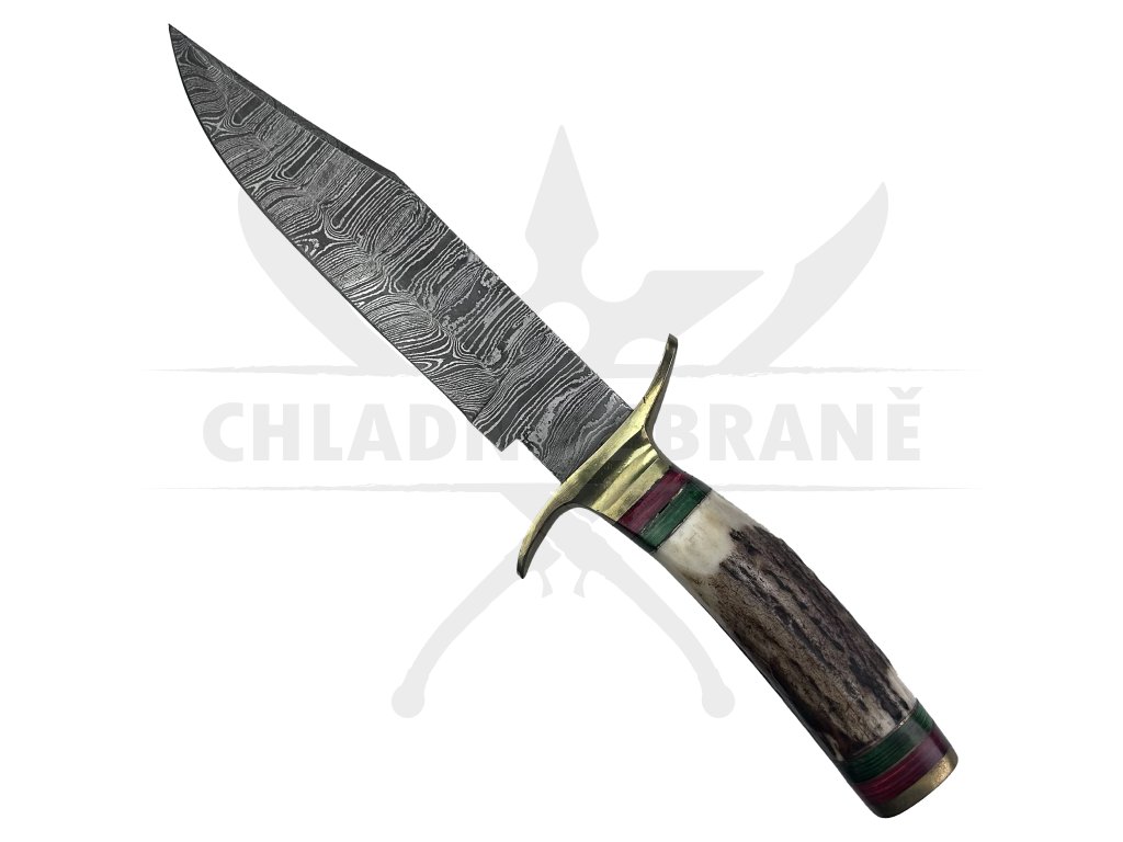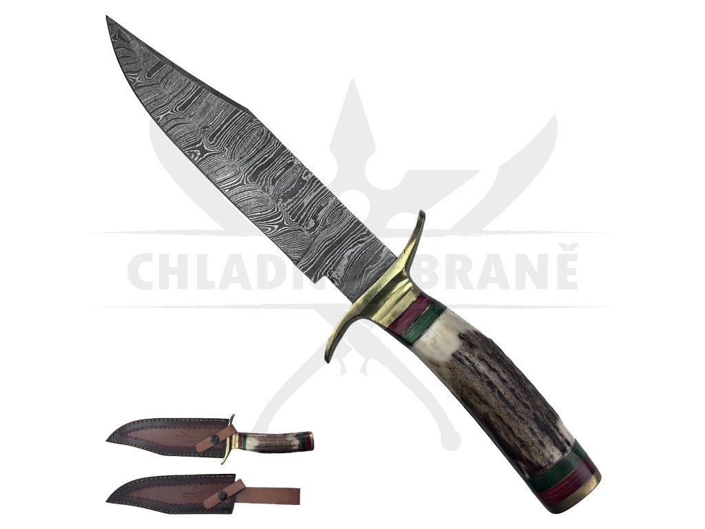 Damaškový lovecký nůž "DEER FRONTIER" s koženým pouzdrem