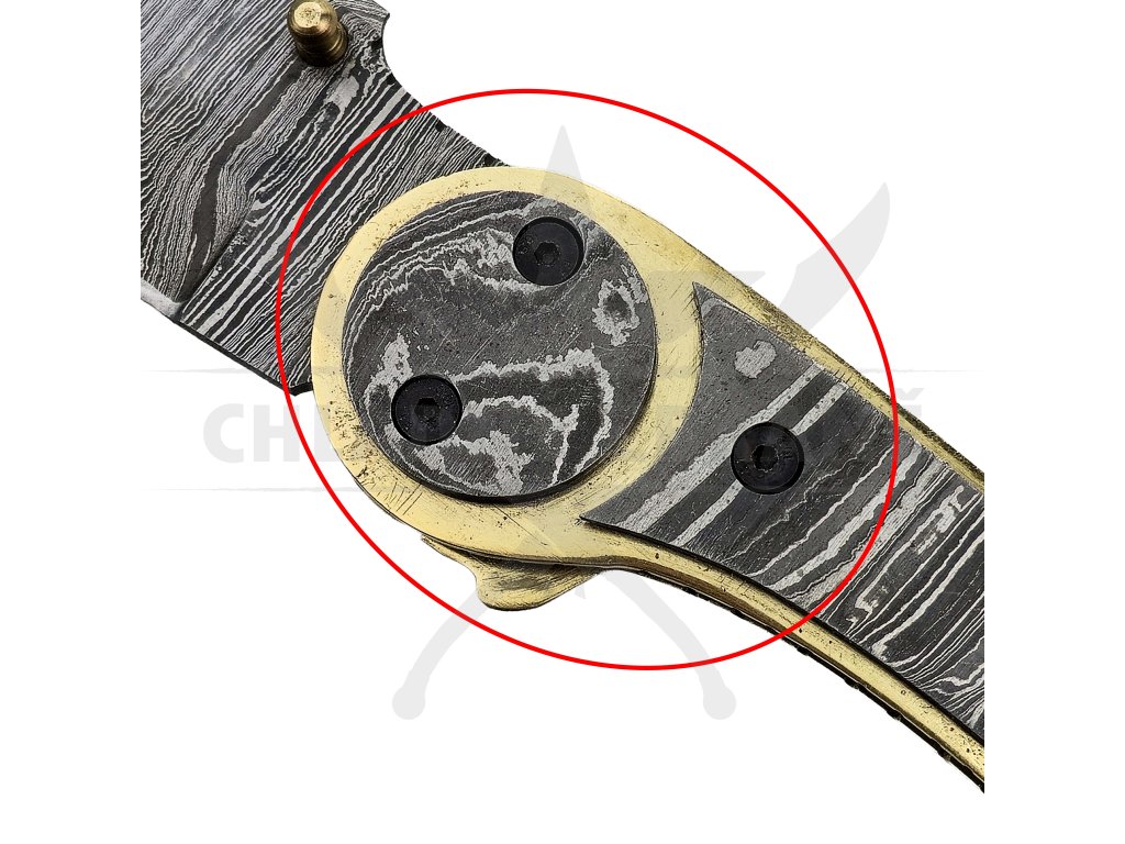 Čepel damaškového zavíracího nože "STEAMPUNK" je velice elegantním a zároveň masivním kouskem oceli. Její délka 8 cm je ideální čepelí pro denní využití za jakékoliv situace. Čepeli vévodí impozantní damašková kresba, která je ozdobená mosazným kolíkem pro snazší otevíraní nože. Čepel je také opatřená příjemnou opěrkou pro palec, díky které budou vaše řezy ještě preciznější. Čepel je pak broušená dutým výbrusem, takže se nemusíte bát o ostrost vašeho nového nože.
