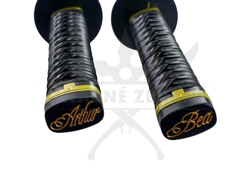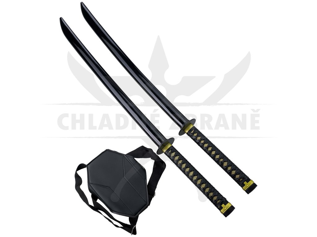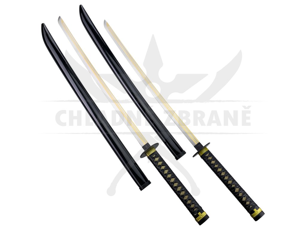 Čepele jsou vyrobeny z uhlíkové oceli a nejsou ostřené, díky čemuž jsou vhodné pro cosplay, výstavní účely či filmové rekvizity. Dřevěné pochvy saya jsou lakované do lesklého černého odstínu, zatímco rukojeti tsuka jsou obalené černou tkaninou s detaily ve zlaté barvě. Kovové záštity tsuba podtrhují jejich autentický vzhled a přidávají na realistickém dojmu.