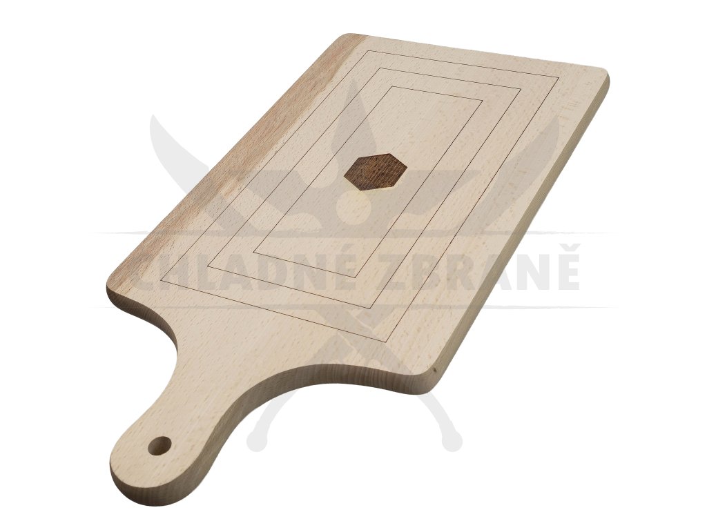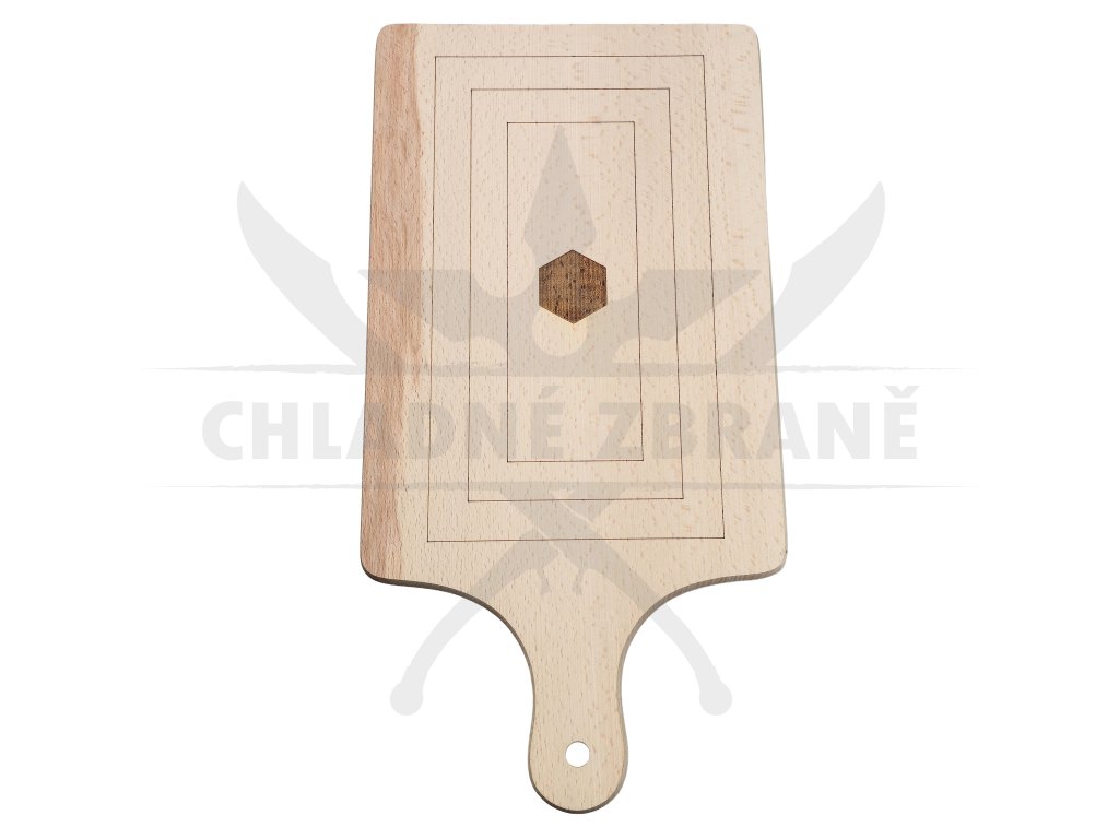 Dřevěné prkénko "THROWING BOARD" je malý, přenosný cvičný terč pro trénink s malými vrhacími zbraněmi. Vyrobeno z kvalitního tvrdého dřeva. Díky vypálenému středu (2 varianty designu – kruh nebo šestihran) získáte jasný cíl pro přesný hod.