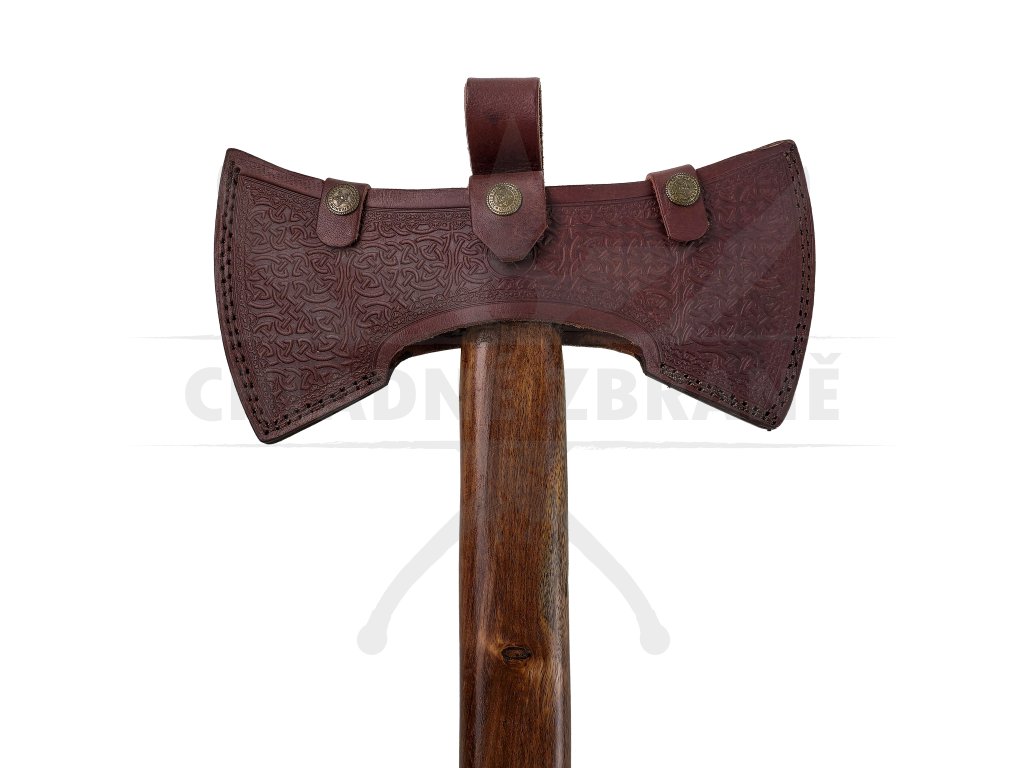 Součástí této masivní dvoubřité sekery "SKELLIGE WARRIOR" je i kvalitní ručně šité kožené pouzdro z pravé hovězí kůže, díky kterému tento masivní skvost můžete mít neustále po ruce například pro případ, že by jste si potřebovali udělat rituální vatru!