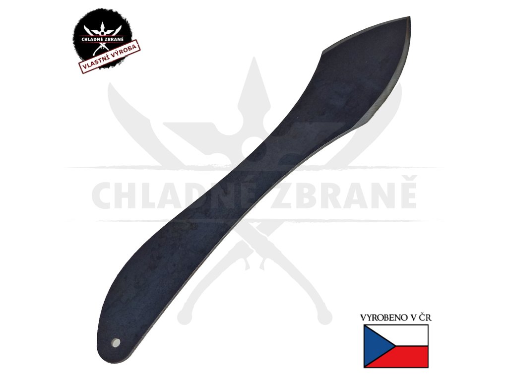 Vrhací nůž "FLYING SWORD" je vyroben z čisté uhlíkové oceli. Tento materiál je skvělý díky své hmotnosti a převážně ceně! Uhlíková ocel má asi jedinou nevýhodu - koroduje. Je možné, že časem chytne v rámci vlhkosti korozi, nicméně koroze se dá odstranit ocelovým kartáčem nebo brusným papírem či ji lze předcházet pravidelnou údržbou (čištěním a mazáním). A hlavně - nějaká malá rez vůbec nevadí v kvalitním vrhání!!!