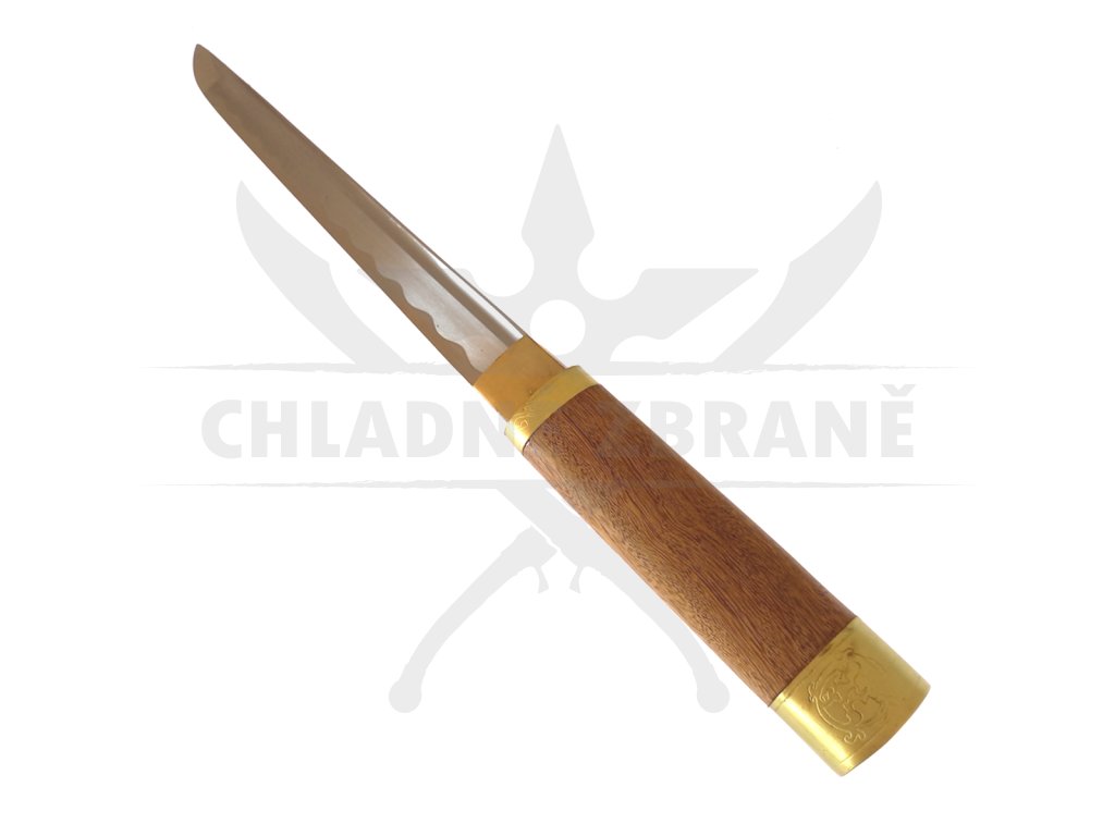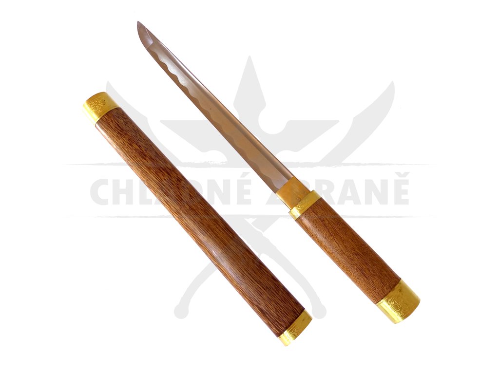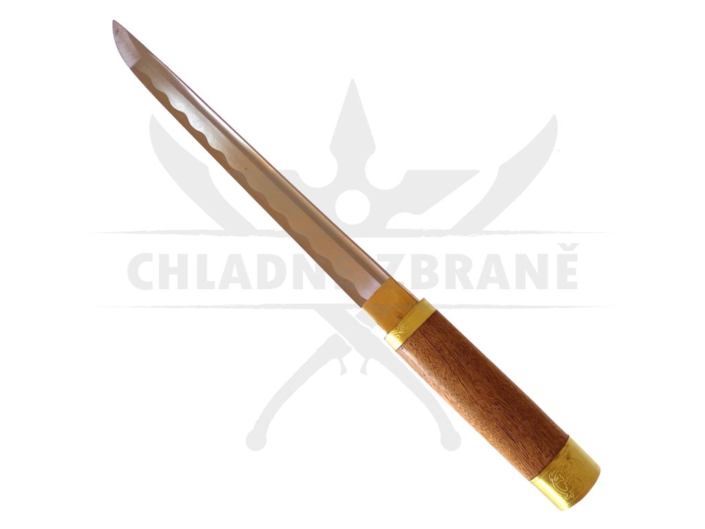 Tento kousek je opravdu honosný, neboť disponuje skutečně luxusním zpracováním. Čepel je vyrobena z kvalitní oceli, tsuba chybí, avšak i takové kousky v Japonsku byly. Rukojeť je poté vyrobena z kvalitního a nádherně stylizovaného dřeva se zlatým zakončením s motivy Japonska. Pochva k tantu je vyrobena ze stejného materiálu a v podobném stylu jako rukojeť. Je to vskutku luxusní podívaná, která může doplnit Vaši sbírku. Je možné s ní i sekat, ale nedoporučujeme žádný druh kontaktního boje. I přesto může být použita jako rekvizita pro kostým či divadelní představení.