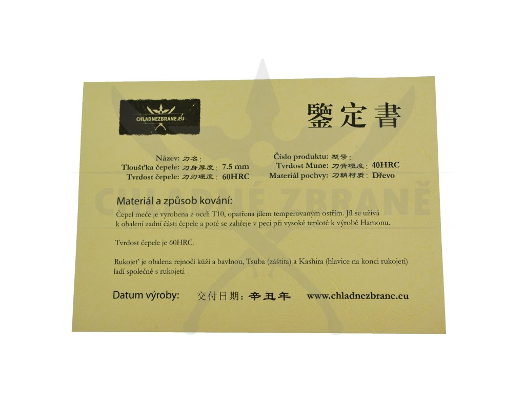 | Materiál: | Japonská ocel T10, rejnočí kůže, bavlna, ocel, mosaz, hedvábí |