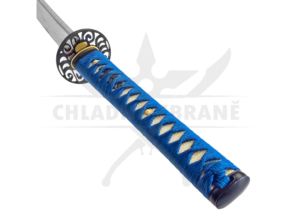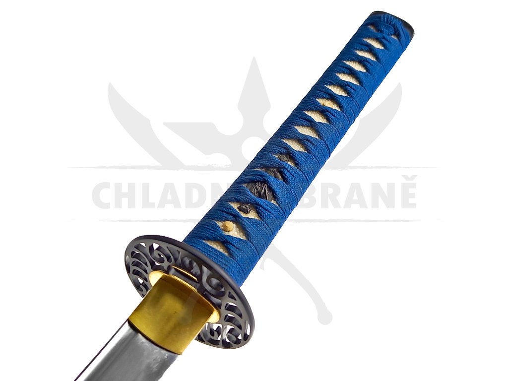 Rukojeť je vyrobena v tradičním Japonském stylu. Základ tvoří Same-nuri - v tomto případě pravá rejnočí kůže. Ta obepíná rukojeť po celé její délce. Přes rejnočí kůži je následně natažena bavlna modré barvy, která se omotává tradičním stylem, který dává kataně ten "správný" vzhled. Pod omotávkou si všimnete i Menuki (ozdoba) ve zlaté barvě. Ocelová tsuba (záštita), je kruhového tvaru a vnitřní zdobení připomíná vlny.