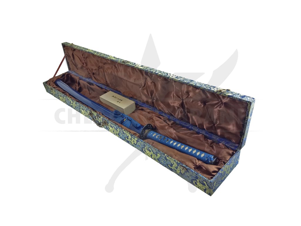 Nádherný Samurajský meč, který Vás na 100% okouzlí svou barvou a zpracováním. Japonská Katana "KAPPA" je funkčním kouskem, který působí, jako by jeho uživatel mohl vládnout vodním elementem. Nejedná se však o výstavní kousek, ale o plně funkční meč na trénink a Tameshigiri (sekání bambusové rohože). Vhodný dárek pro fanoušky Japonské kultury, kteří mají rádi modrou barvu.