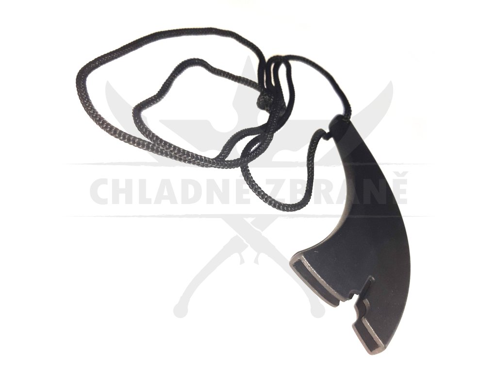 Díky temné povaze karambitu jej už nebudete chtít dát z ruky. Jeho zahnutá čepel z nerezové oceli působí démonsky zlověstně :-). Pevná černá rukojeť je ergonomicky tvarovaná a zakončená očkem pro prst. Na vrchu rukojeti se nachází vroubkované místo pro lepší držení. To vše pro ten nejpohodlnější a nejjistější úchop!