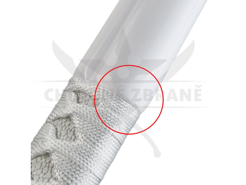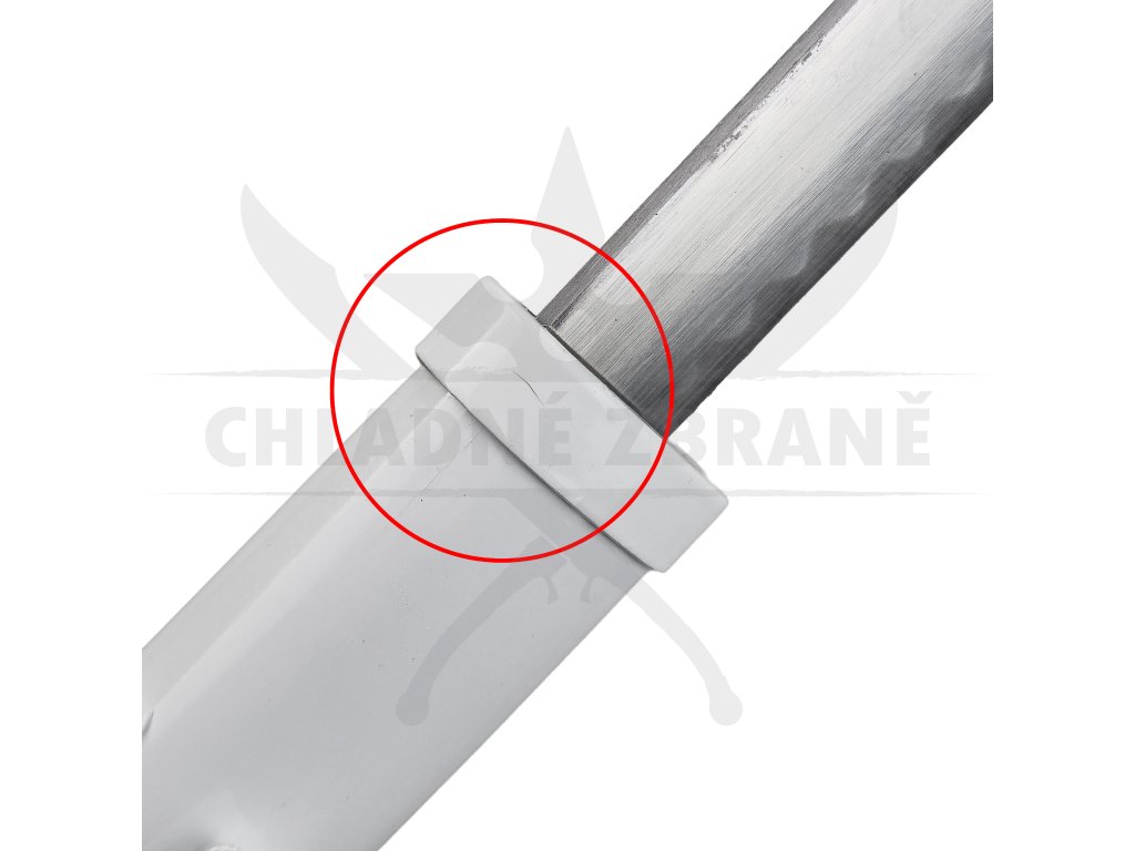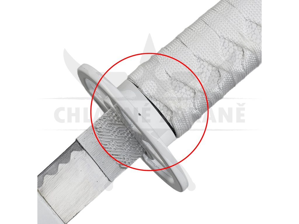 Součástí meče je také elegantní dřevěná pochva, též v bílé barvě.