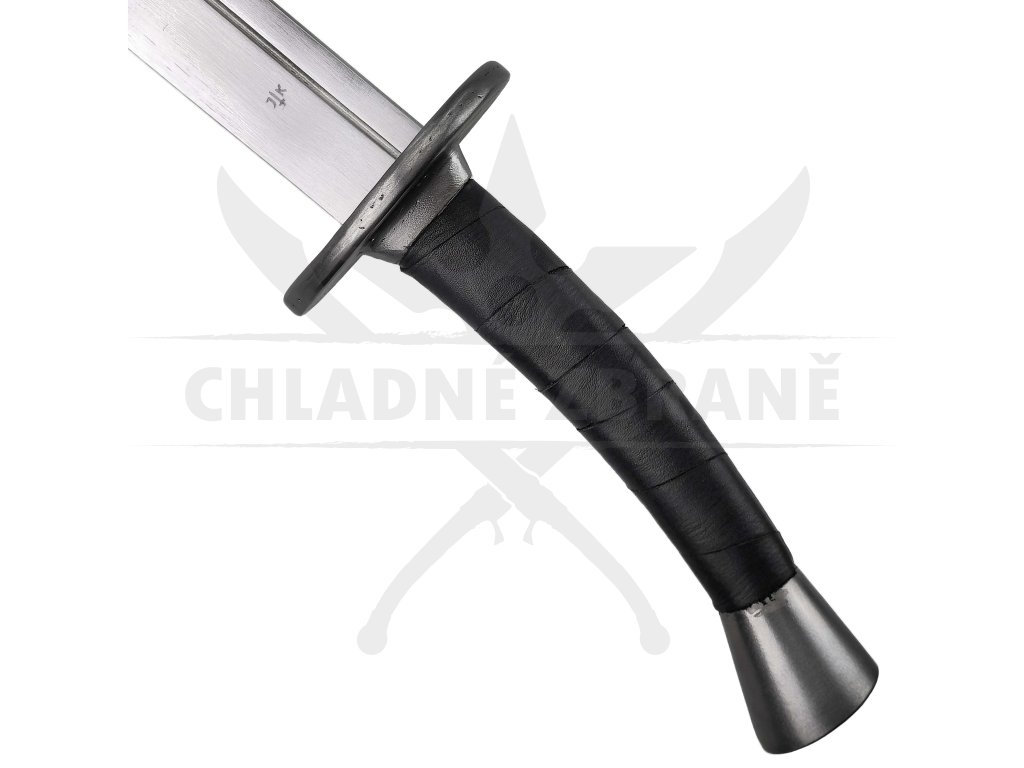 Rukojeť je pokryta pevným koženým opletem, který poskytuje jistý a pohodlný úchop i při delším používání. Kovová záštita chrání ruku před údery, zatímco hlavice přispívá k vyváženému těžišti a plynulému ovládání. Každý kus je originální ručně kovaný výrobek z české dílny, vytvořený s důrazem na detail, odolnost a high quality zpracování.