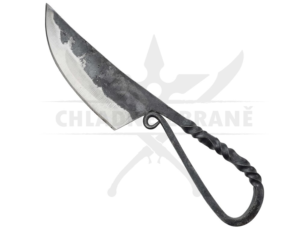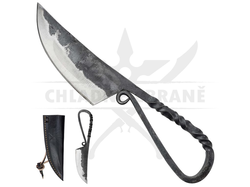 Rustikální nůž "CELTIC SMITH" je poctivě ručně kovaný z uhlíkové oceli 1080 a inspirovaný tvarem historických keltských nožů. Jeho otevřená spirálovitá rukojeť z jednoho kusu kovu působí archaicky, ale zároveň ergonomicky padne do ruky.