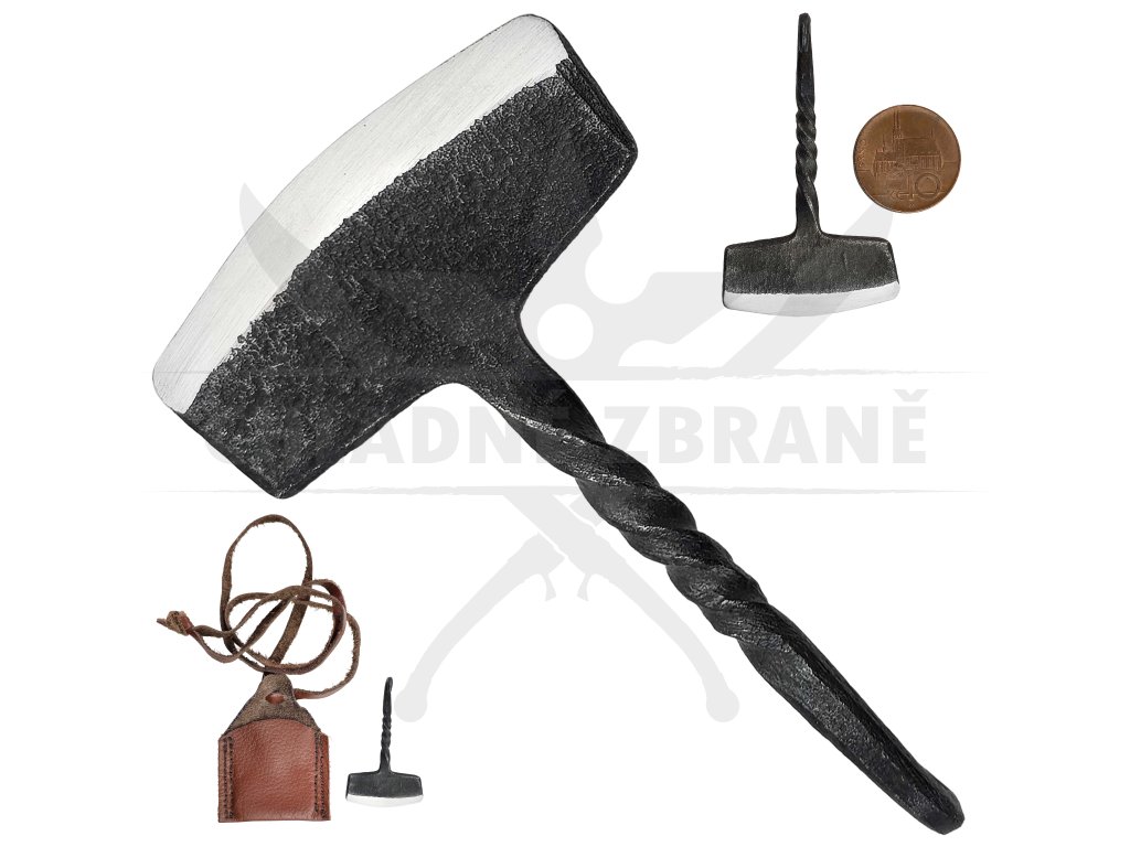 Kovaný přívěsek "FORGED MJÖLNIR" s koženým pouzdrem