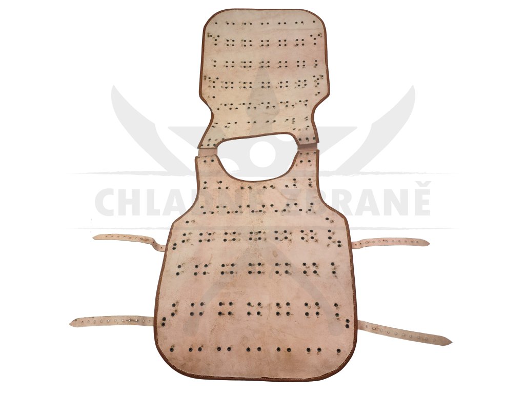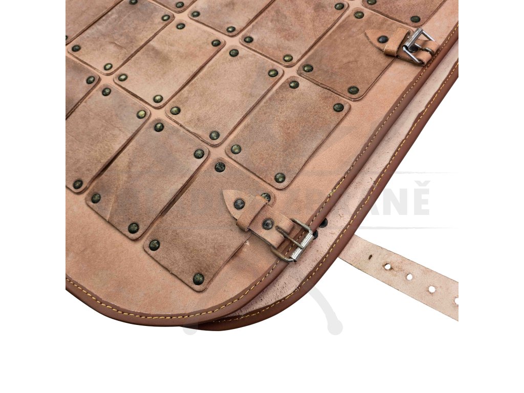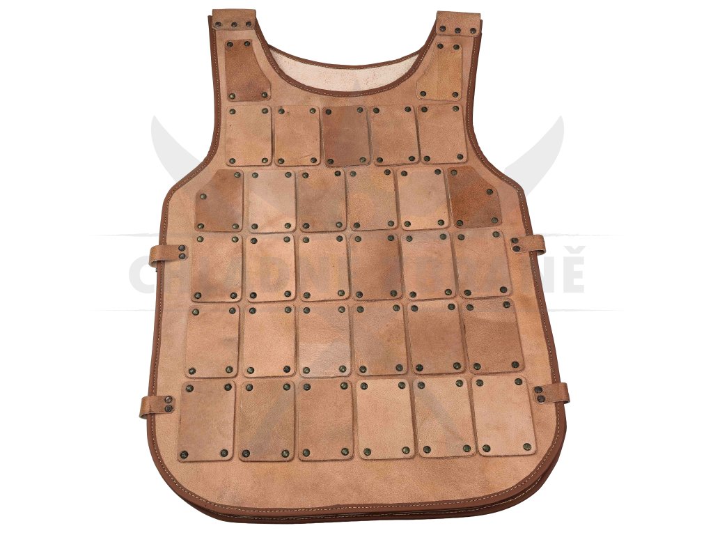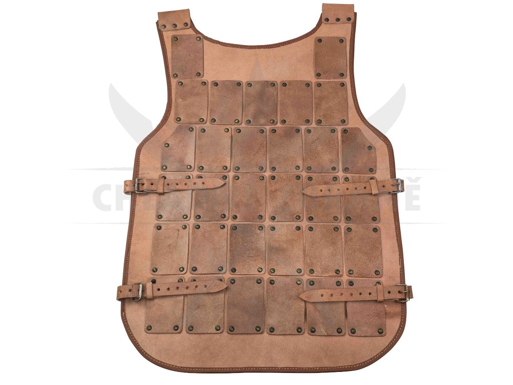 Robustní a nekompromisní. Tato kožená vesta je inspirována historickým lamelovým brněním a dodává nositeli jak ochranu, tak autentický styl. Díky hustě nýtovaným plátům z hovězí kůže nabízí nejen skvělý vzhled, ale i částečnou ochranu při šermu, LARPu nebo reenactmentu.
