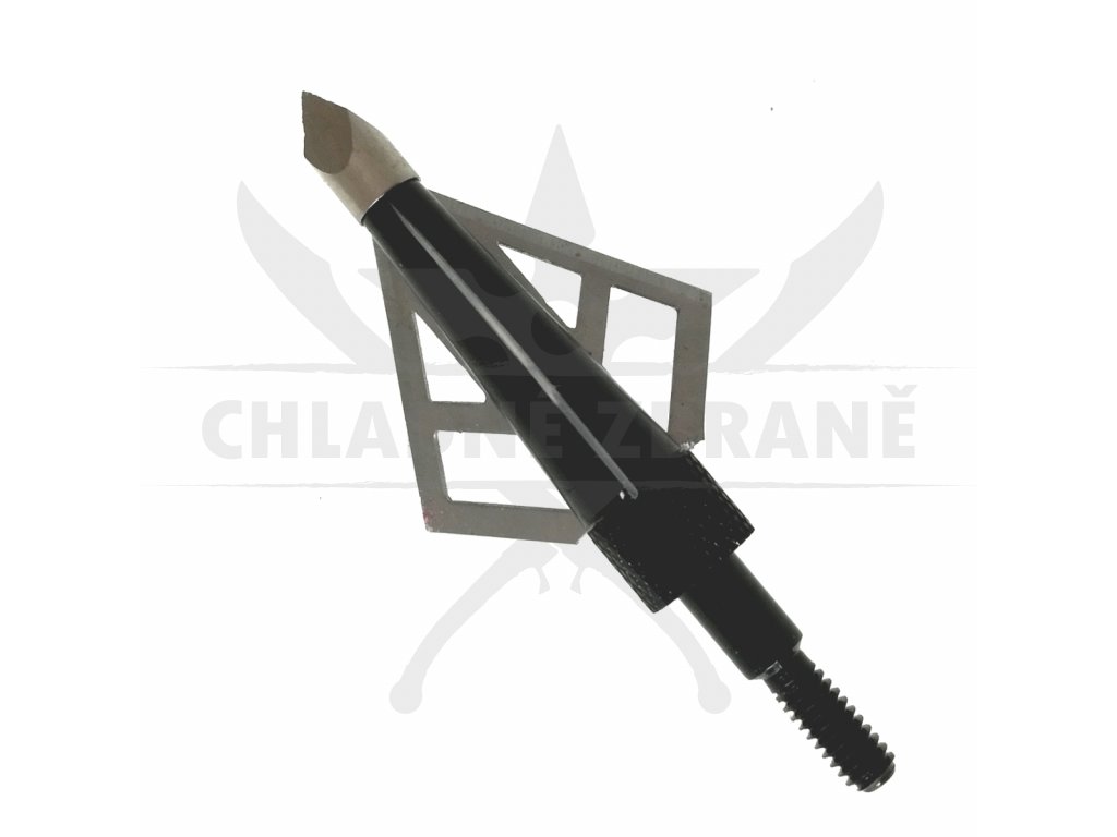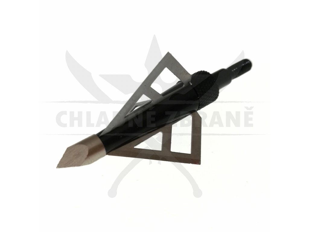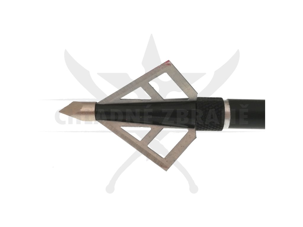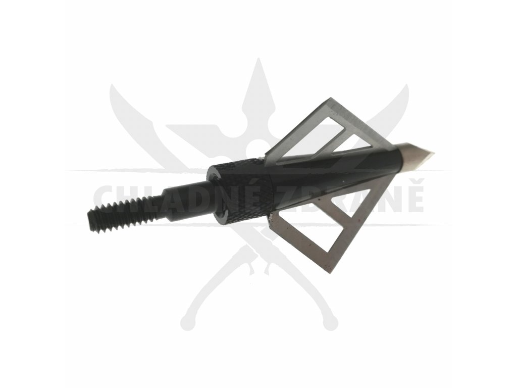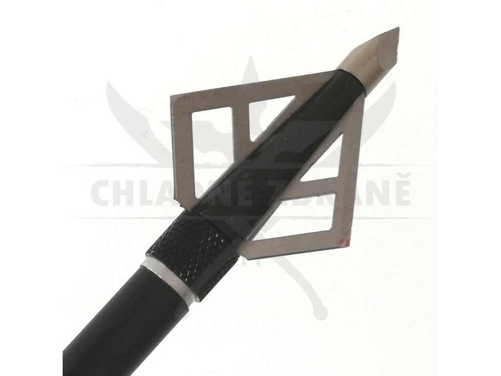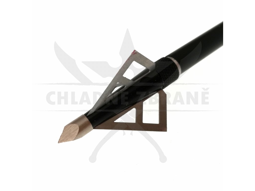 Kovový hrot v černo stříbrném provedení a je vybaven třemi čepelemi, které snadno projdou Vaším cílem.
