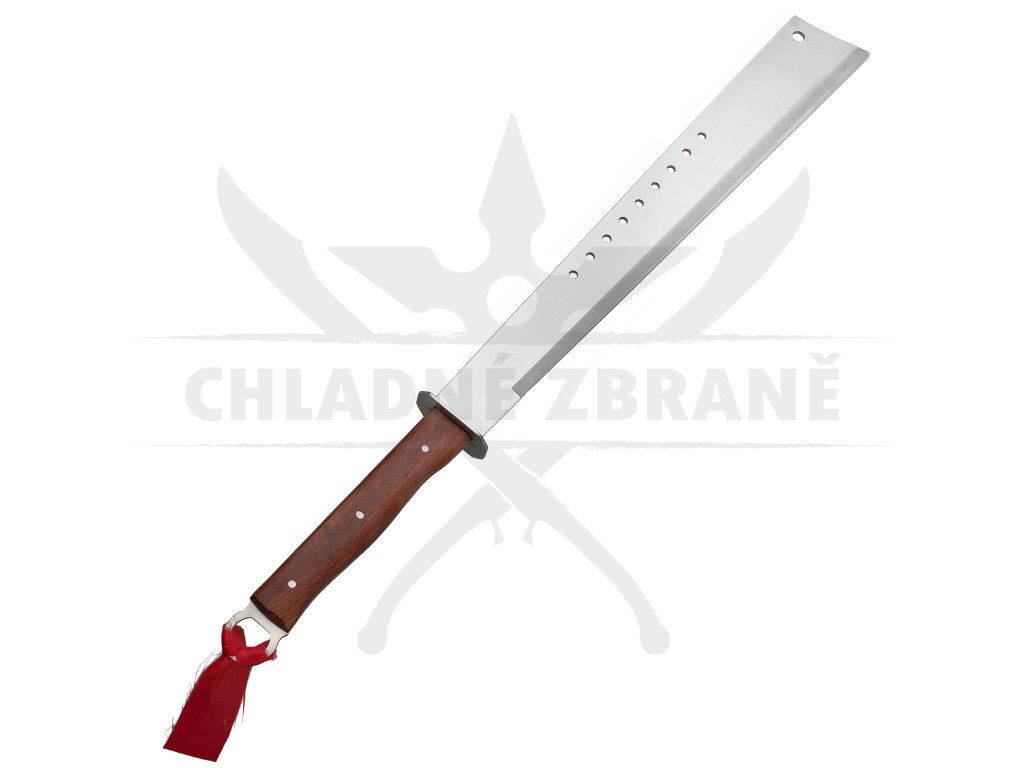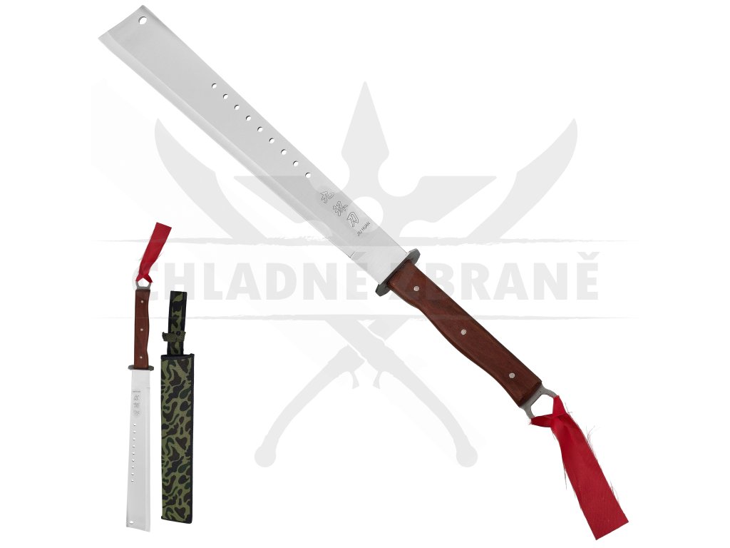 Čepel je vyrobena z odolné nerezové oceli, což zajišťuje její dlouhou životnost a odolnost proti korozi. Navíc má čepel díry v čepeli, které slouží k odlehčení váhy mačety. To znamená, že i přes svůj robustní design nebude tato mačeta překážkou během Vašich aktivit venku.