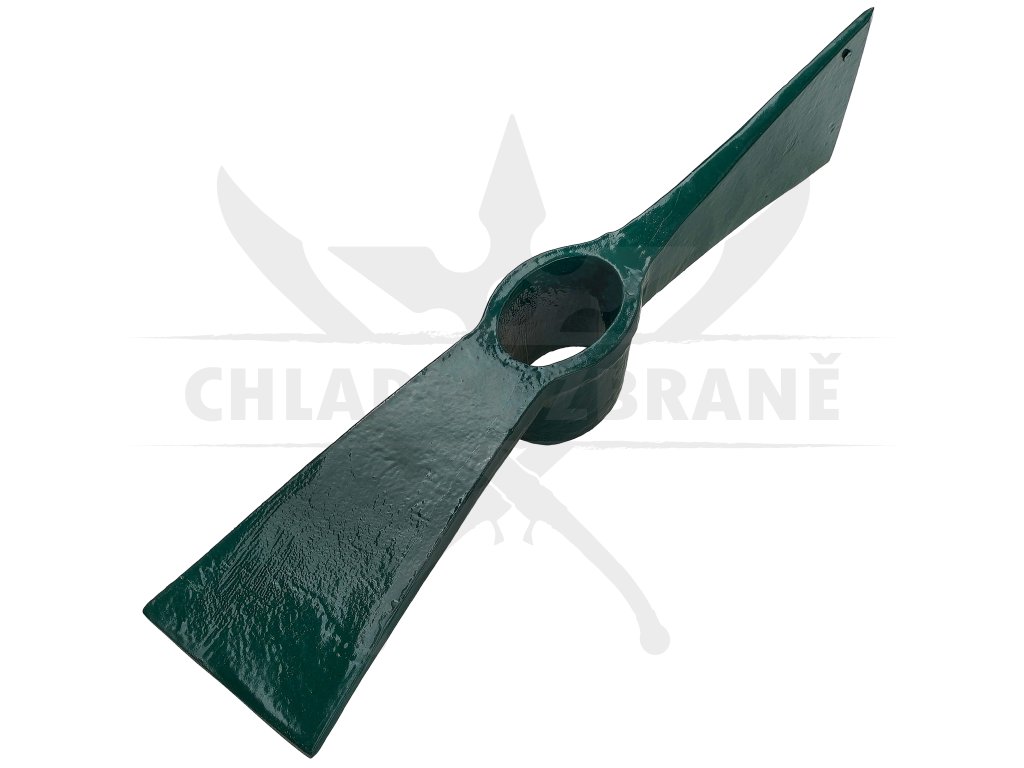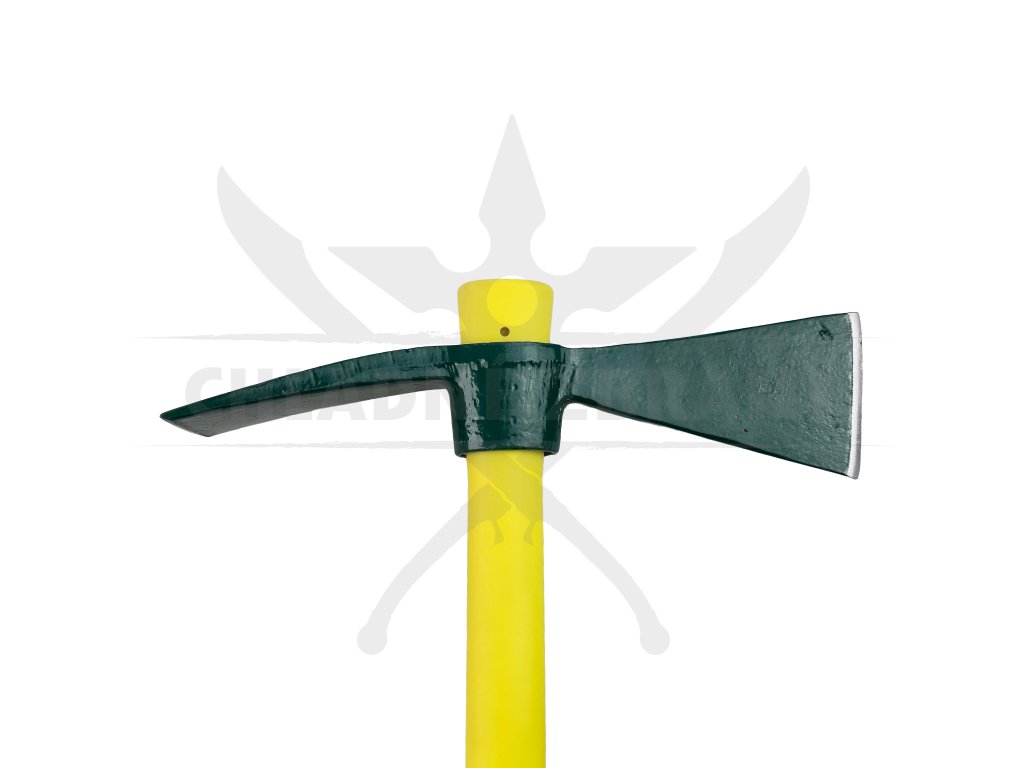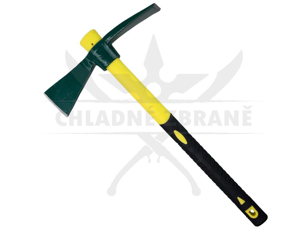 Požárnický krumpáč se sekáčovou hlavicí (dláto/sekera) – rozměr 450 × 295 mm, hmotnost 0,96 kg, ideální pro sekání a obdělávání půdy, páčení a bourání.
