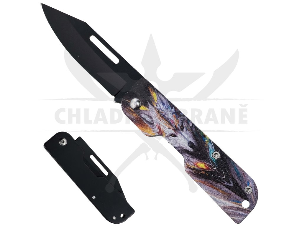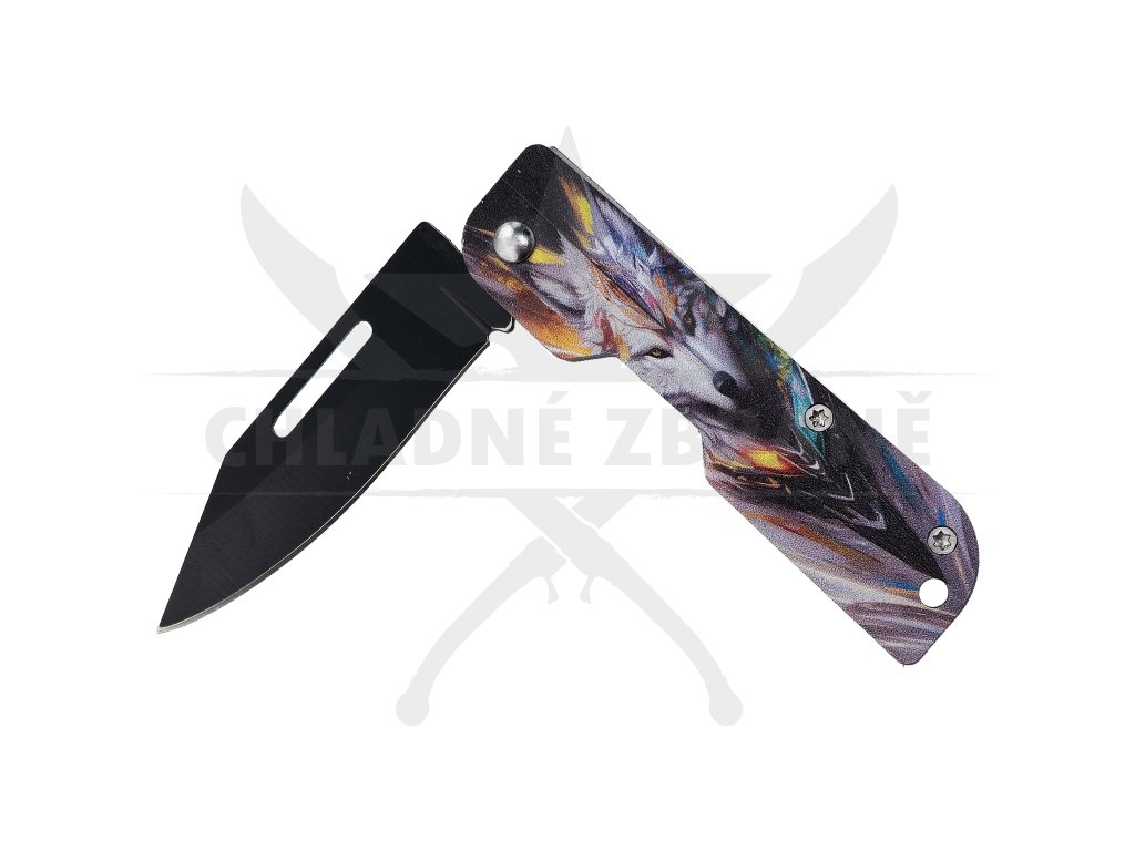 ABSTRACT WOLF je cenově dostupný, stylový zavírací nůž menších rozměrů, který zaujme především svým originálním vzhledem. Střenka je z jedné strany zdobená barevným abstraktním motivem vlka, což z něj dělá ideální volbu pro mladší uživatele, začátečníky nebo jako designový dárek.
