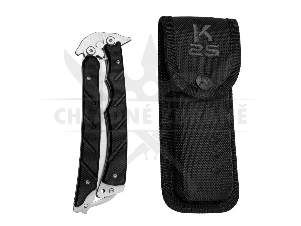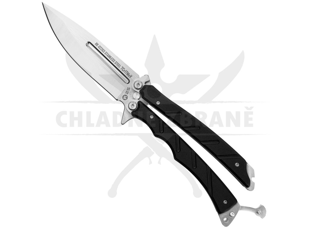 Rukojeť z černého G10 kompozitu je tvarovaná pro pevný a jistý úchop. Celková délka nože 26 cm a hmotnost 240 g dodávají balisongu výrazně masivní charakter, který ocení především ti, kdo preferují těžší a stabilnější zbraně. Kvalitní zpracování a důraz na funkční design dělají z tohoto balisongu nejen esteticky zajímavý kousek, ale také plně použitelný nástroj.