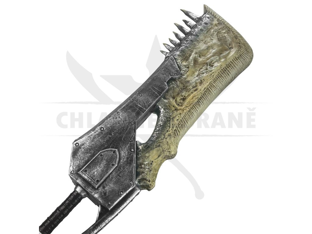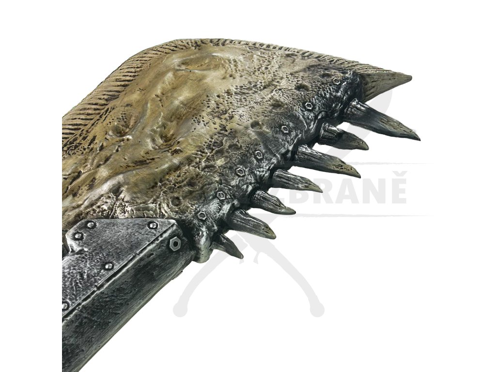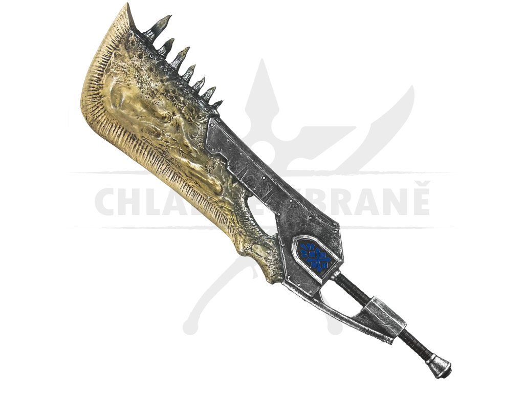 Detailní zpracování věrně kopíruje herní předlohu – od čepelí připomínajících zubatou čelist po surový, drsný styl Monster Hunter univerza.