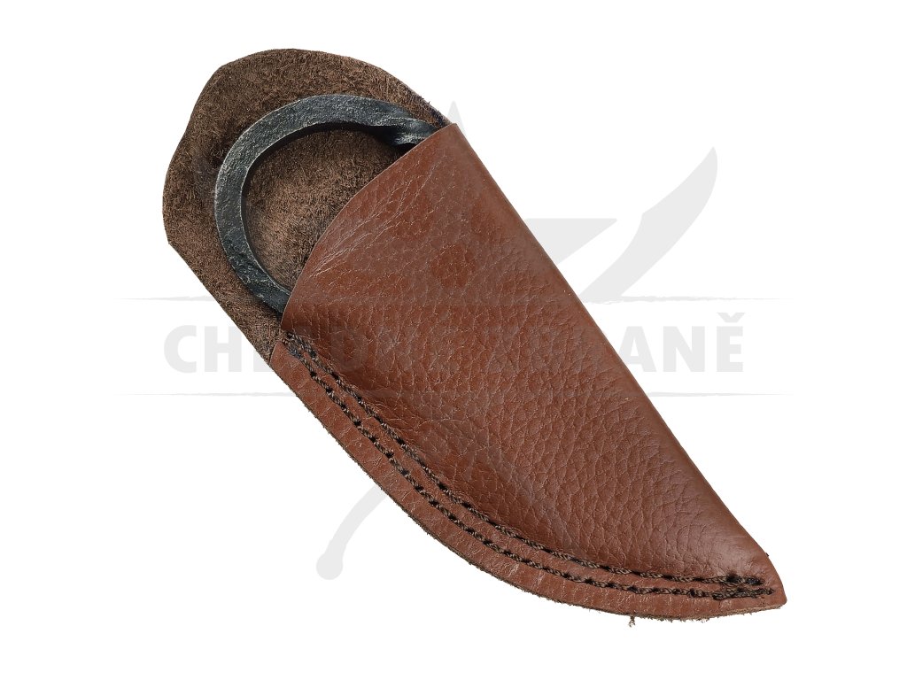 Součástí je kožené pouzdro, které chrání nůž při přenášení a podtrhuje jeho historický vzhled.