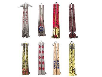 Celokovový motýlek / balisong vhodný pro nácvik triků. Klasická pojistka.