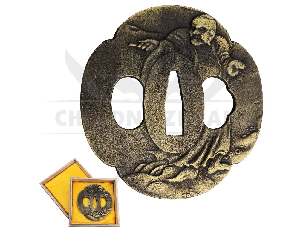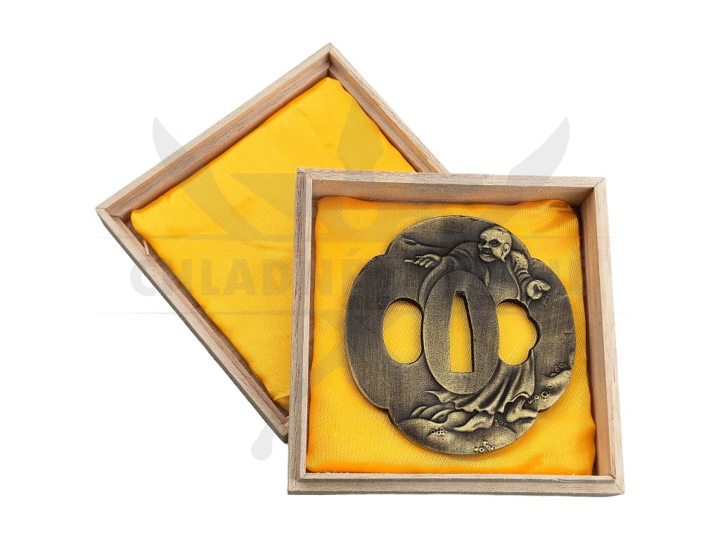 hradní záštita „RAKAN TSUBA“ je kvalitní tsuba určená pro většinu samurajských mečů typu katana, wakizaši či tanto. Je vyrobena ze slitiny zinku, která kombinuje odolnost, pevnost a dlouhou životnost, takže skvěle poslouží jak pro tréninkové sestavy (kata, iaidó), tak pro sběratelské meče a dekorativní úpravy.