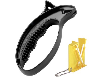 Kombinovaný brousek na nože, který je skladný a vysoce účinný. Disponuje karbidovým a keramickým brusným otvorem.