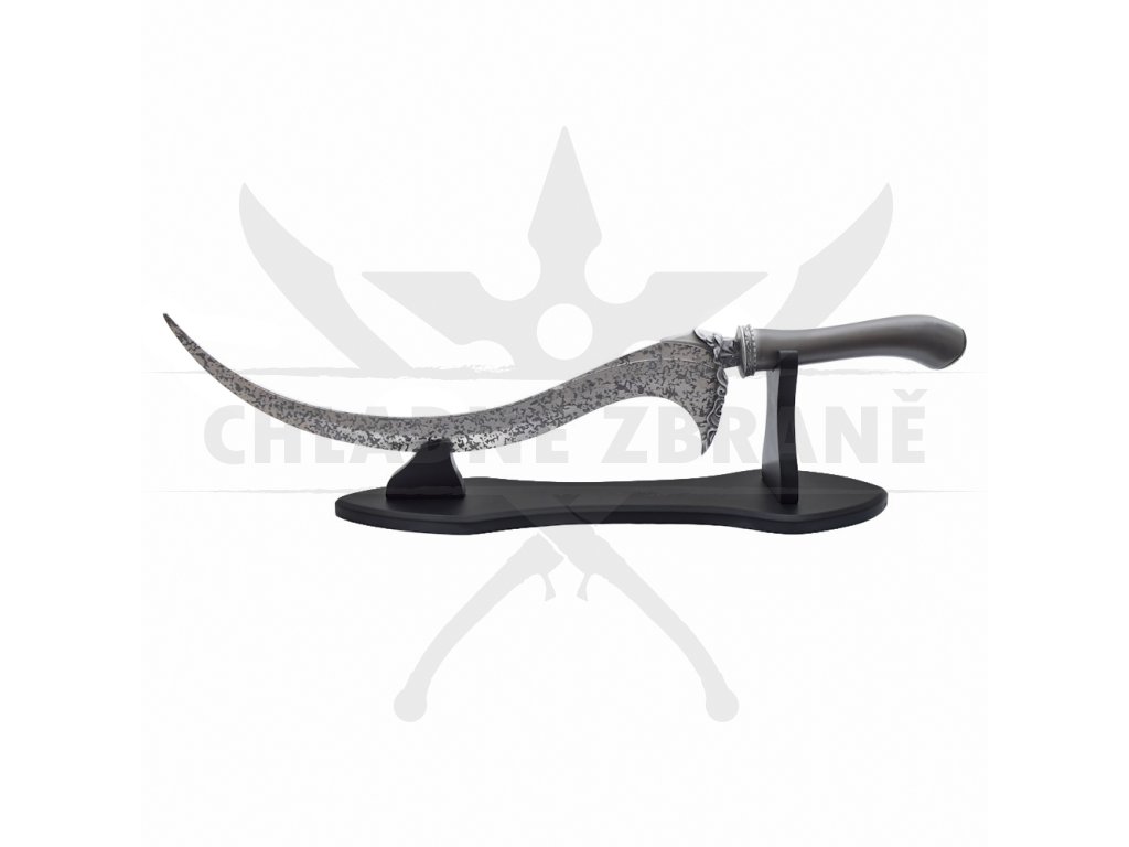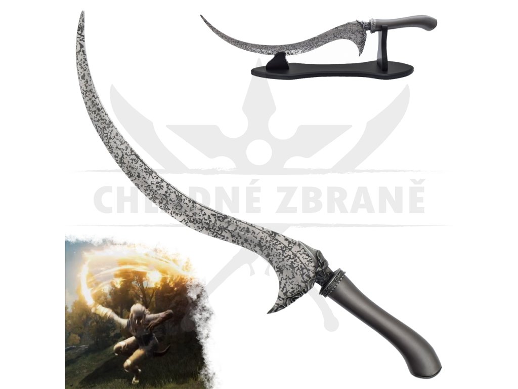 Dýka „BLADE OF CALLING“ představuje dekorativní zbraň s výrazně zakřiveným profilem, který působí jako zbraň určená pro rychlý a přesný útok. Neostřená nerezová čepel s ornamentálním vzorem vypadají přesně jako z The Lands Between, díky čemuž je zbraň poutavá při jakémkoli vystavení. Ostrá špička a pozvolné zužování čepele zvýrazňují dynamiku tvaru a dodávají dýce elegantní, až mystický charakter.