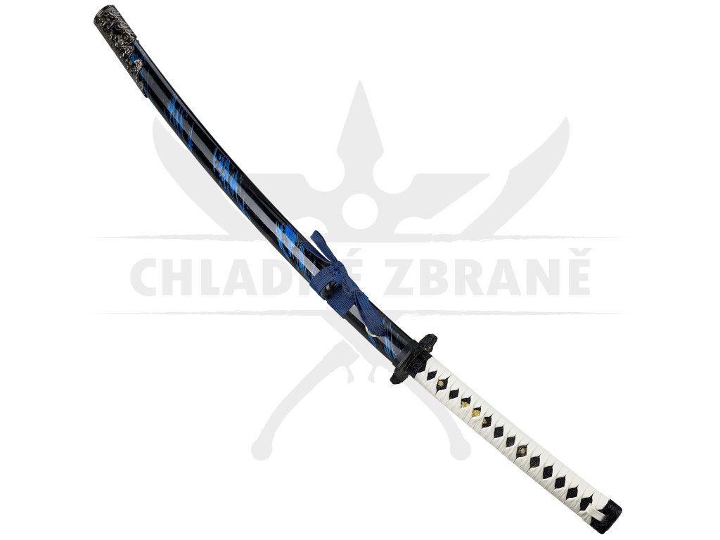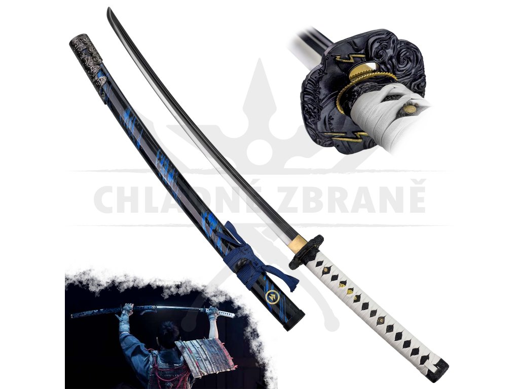 Tato nádherná katana „JIN’S HONOR“ je poctou statečnému samurajovi Jinu Sakaiovi z herní legendy Ghost of Tsushima. Jde o detailní ručně vyráběnou repliku jeho meče, který symbolizuje čest, odvahu a vnitřní boj mezi tradicí a přizpůsobením se novým cestám válečníka. Na první pohled zaujme elegantní kombinace bílého opletu tsuky (rukojeti) a tmavé pochvy (saya) s modrými ornamenty.