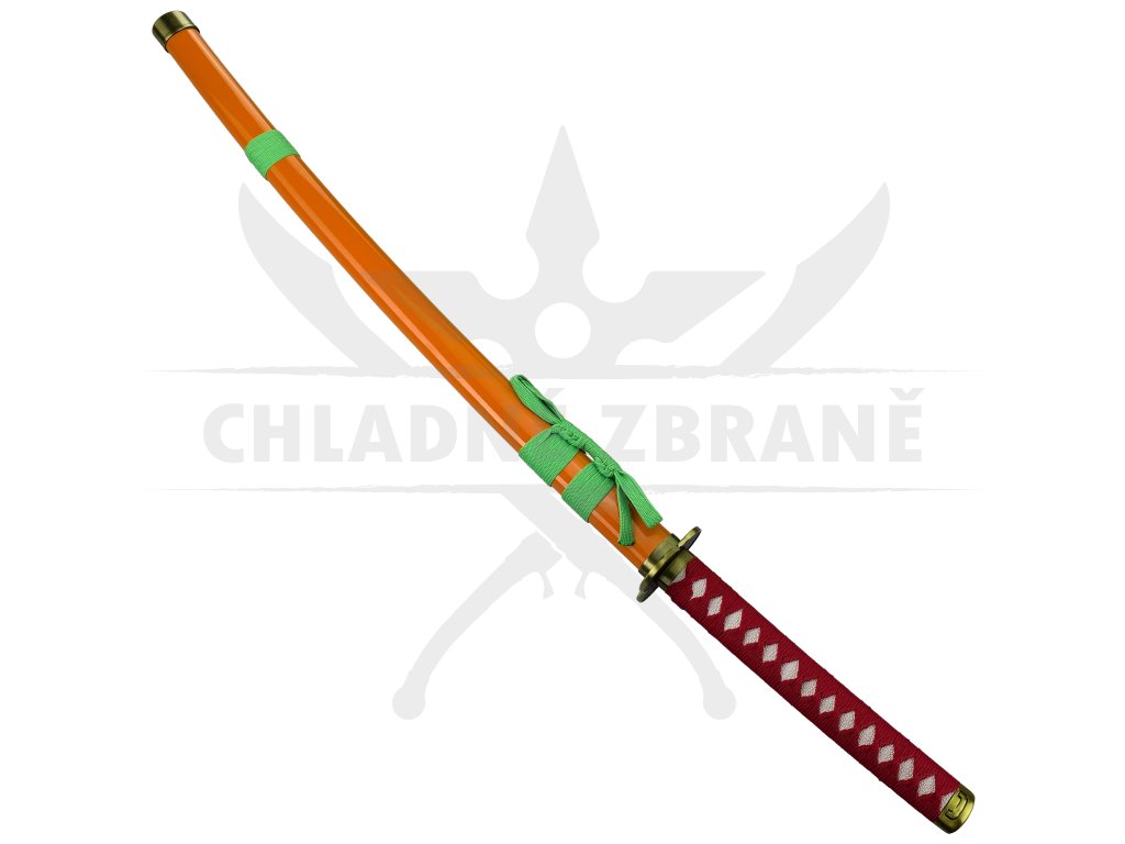 Barevné provedení okamžitě připomene elegantní a nekompromisní styl O-Kiku, samurajky z Wana, která i v těch nejdramatičtějších scénách jedná s klidem a sebevědomím. Kombinace syté oranžové pochvy, jemně tvarované tsuby a kontrastního červeno-bílého opletu rukojeti vytváří vzhled, který působí, jako by vystoupil přímo z anime. Katana skvěle zapadne do každé sbírky fanouška One Piece a zároveň působí výrazně a atraktivně při cosplayi nebo focení.