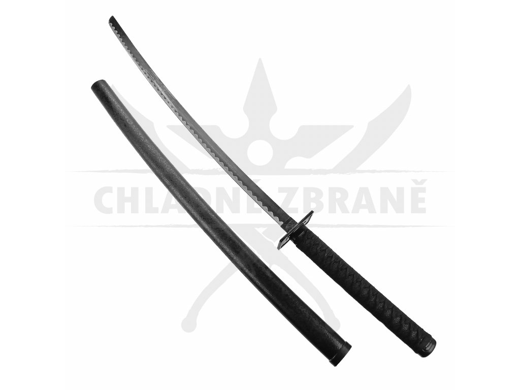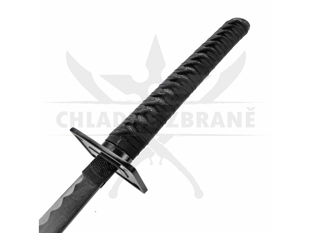 Celodřevěná pochva má povedený černý texturovaný nástřik, takže po přejetím ruky ucítíte lehké hrbolky dodávající na designu. Čepel katany je tupá s krásným umělým hamonem (viz foto). Čepel katany ústí do hranaté záštity, která je typická pro všechny historické meče ninjů/nindžů. Rukojeť je tradičně obmotaná japonským způsobem a zakončená kovovou patkou.