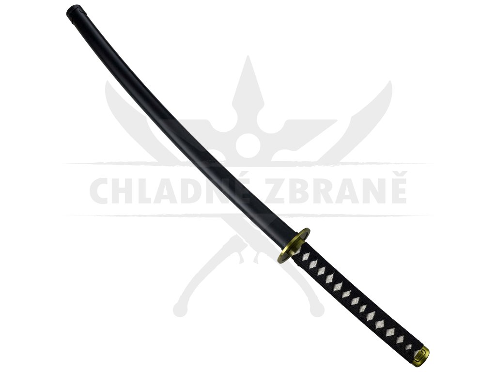 Čepel je vyrobena z karbonové oceli a je neostřená, avšak zakončená ostrým hrotem, takže působí realisticky a vizuálně věrně originálu. Rukojeť je omotána tradičním tkaninovým opletem, který poskytuje dobrou ergonomii a autentický vzhled. Součástí je také dřevěná pochva, lakovaná do hladkého černého lesku, jak tomu odpovídá Akiho zbraň v anime.