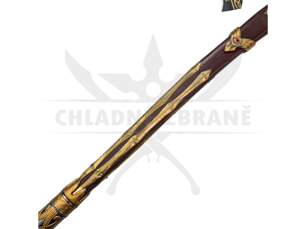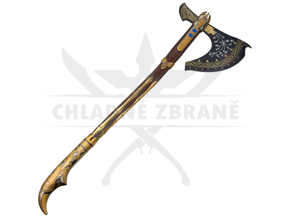 Impozantní repliková sekera "UPGRADED LEVIATHAN" inspirovaná ikonickou zbraní Kratose z herní série God of War. Věrně zpracovaný design zahrnuje bohatě zdobenou hlavici s runami a ornamenty, mosazné prvky a detailně gravírované dřevo na topůrku, které vytváří vizuálně ohromující efekt.