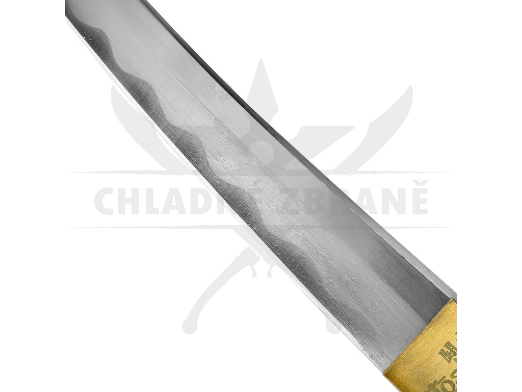| Materiál: | Karbonová ocel 1060, dřevo, rejnočí kůže, bavlna, hliníková slitina |