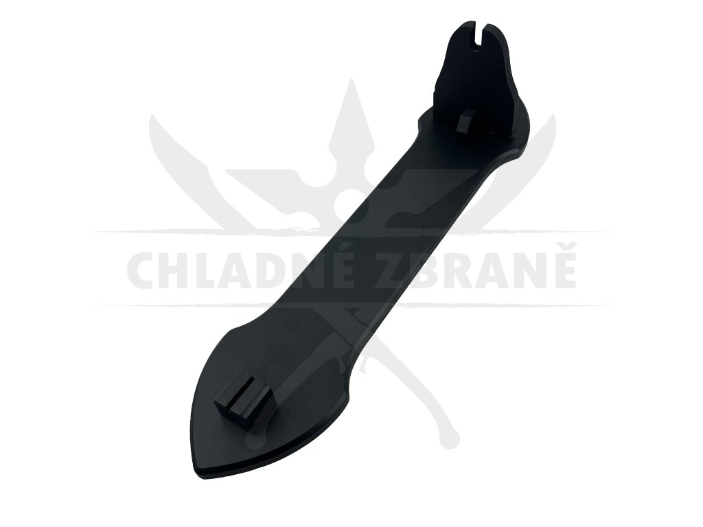 Pochva v kombinaci eko-kůže a dekorovaných vzorů chrání čepel a zároveň působí jako stylový doplněk vystaveného meče. Součástí balení je také dřevěný stojánek na stůl, díky kterému lze katanu elegantně prezentovat v herním pokoji či sběratelské poličce. Celkový dojem podtrhuje výrazná délka meče přes 110 cm, díky níž jde o jeden z nejpůsobivějších Elden-Ring inspirovaných kusů.