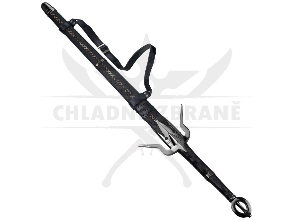 Zdobená dřevěná pochva s kovovými detaily je navržená tak, aby působila věrně vůči zaklínačskému stylu – švy, kovové prvky i barevné ladění odpovídají designu, který fanoušci dobře znají. Součástí je i zádový závěs, díky němuž lze meč nosit způsobem oblíbeným u Witcher postav a zároveň jej bezpečně vystavit.