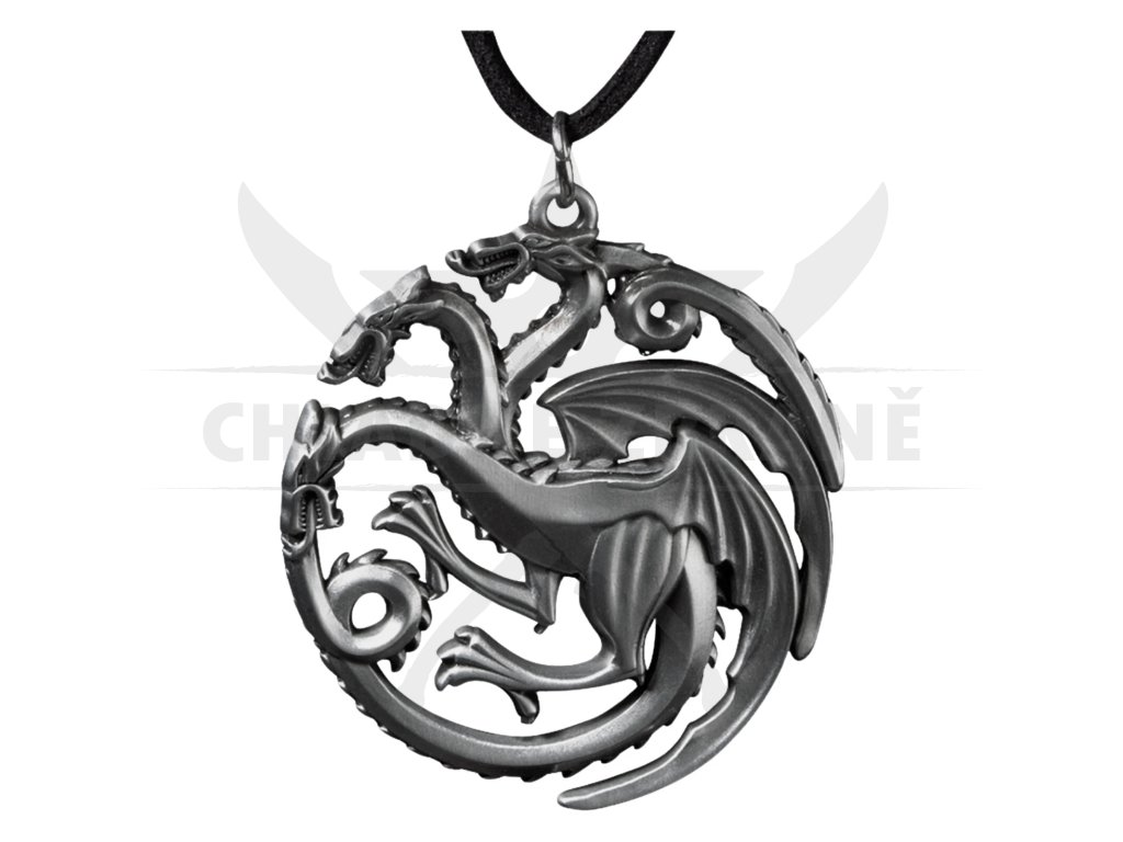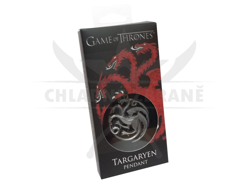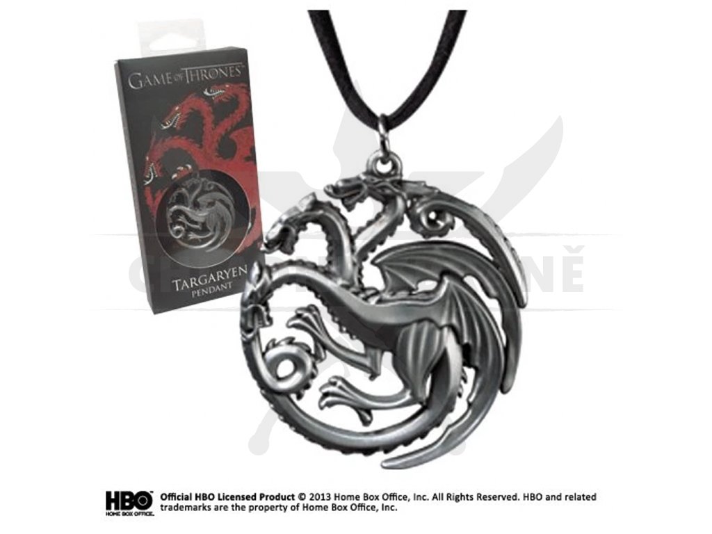 Přívěsek Targaryen Sigil ukazuje výraznou loajalitu k domu Targaryen, v jeho nádherném Sigil sedmi království. Zastoupen trojhlavým drakem symbolizujícím Aegona a jeho sestry.