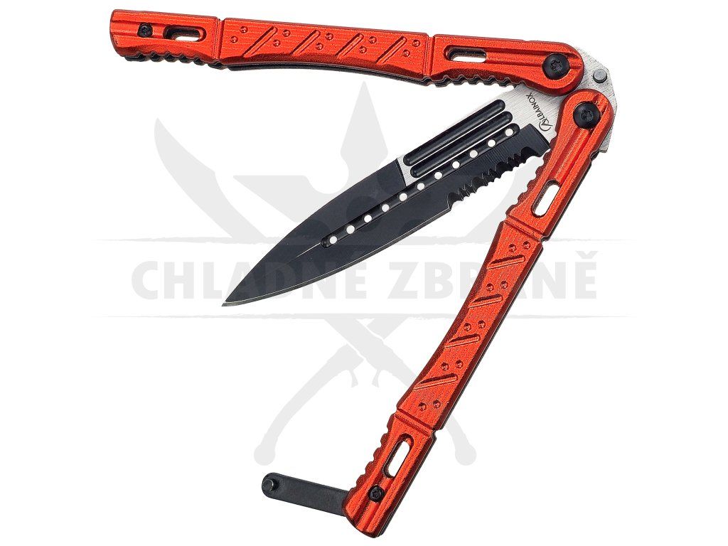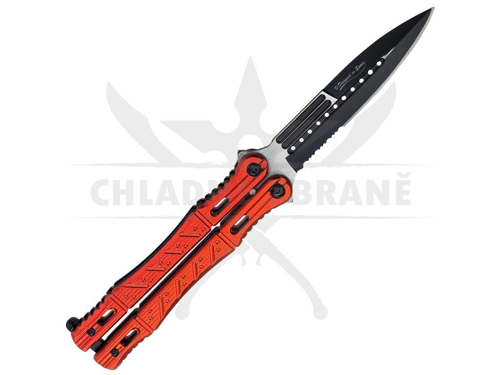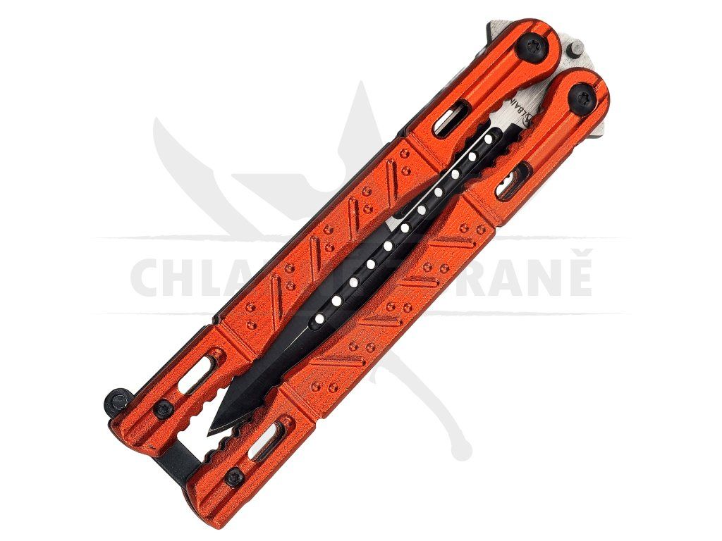 Výrazný balisong, který na první pohled zaujme agresivní kombinací černé čepele a oranžové hliníkové rukojeti. Tenhle motýlek není jen o vzhledu – jde o plnohodnotný EDC nástroj, který zvládne každodenní úkoly stejně dobře jako triky při flipování. Díky své barvě ho navíc jen tak nepřehlédneš, což oceníš i při práci v terénu nebo venku.