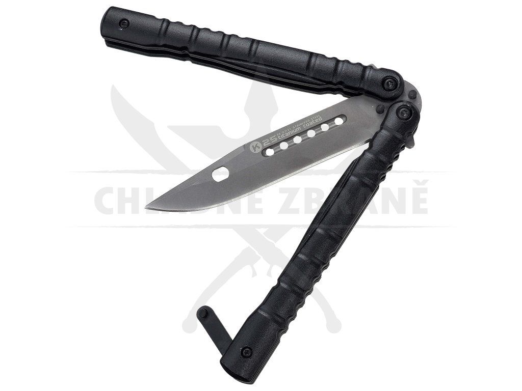 Čepel z oceli 7Cr17Mov s titanovou povrchovou úpravou nabízí solidní odolnost vůči korozi i opotřebení, přičemž si drží dobrou ostrost pro každodenní práci. Hliníková rukojeť je lehká, pevná a ergonomicky tvarovaná, což zajišťuje jistý úchop i při rychlé manipulaci nebo flippování. Konstrukce balisongu je navržená tak, aby byla dostatečně odolná a zároveň plynulá při používání.