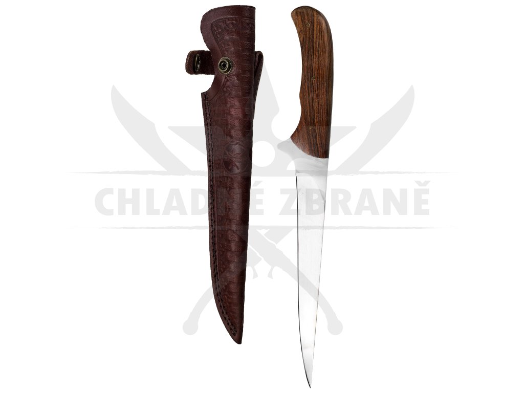 Pevný nůž "TRAIL POINT" je elegantní filetovací nůž určený pro přesnou a jemnou práci — ideální volba pro rybáře, lovce i outdoorové nadšence. Díky dlouhé, úzké čepeli z oceli D2 zvládá čisté a plynulé řezy, ať už při filetování ryb, porcování masa nebo přípravě jídla v přírodě.