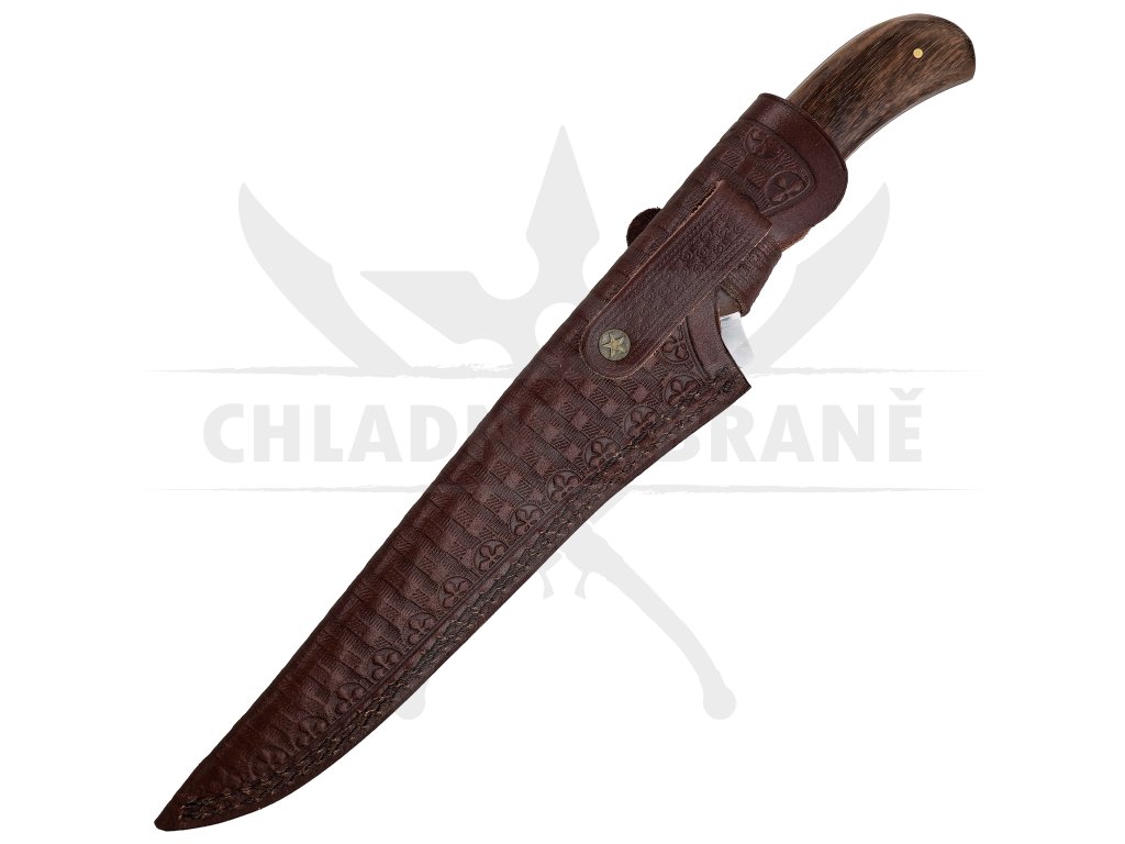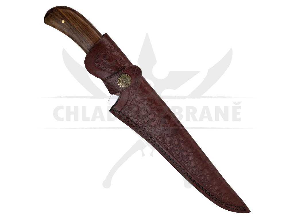 Součástí balení je kožené pouzdro s poutkem na opasek, které chrání čepel a umožňuje snadné nošení v terénu.