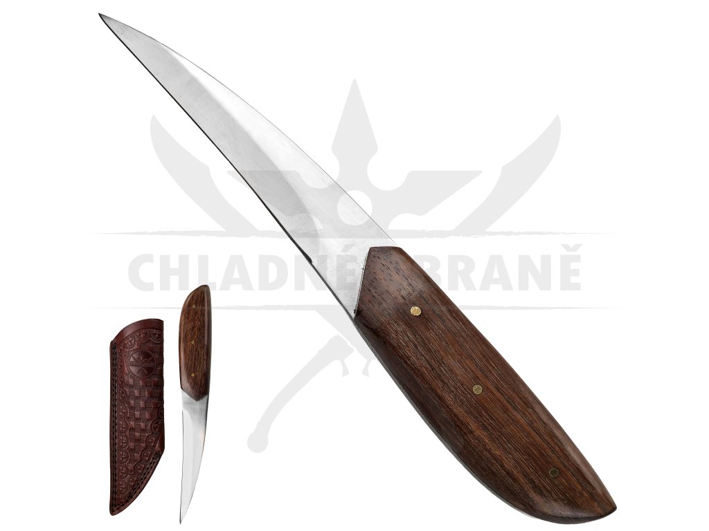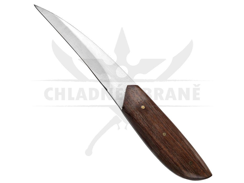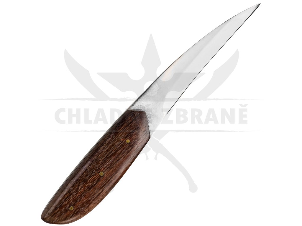 Dlouhá a lehce zahnutá čepel o délce 11,5 cm umožňuje přesné a plynulé řezy, ideální pro práci s dřevem, kůží či potravinami v přírodě. Rukojeť z rosewoodu příjemně padne do ruky, je hladce broušená a přirozeně odolná vůči vlhkosti i opotřebení.