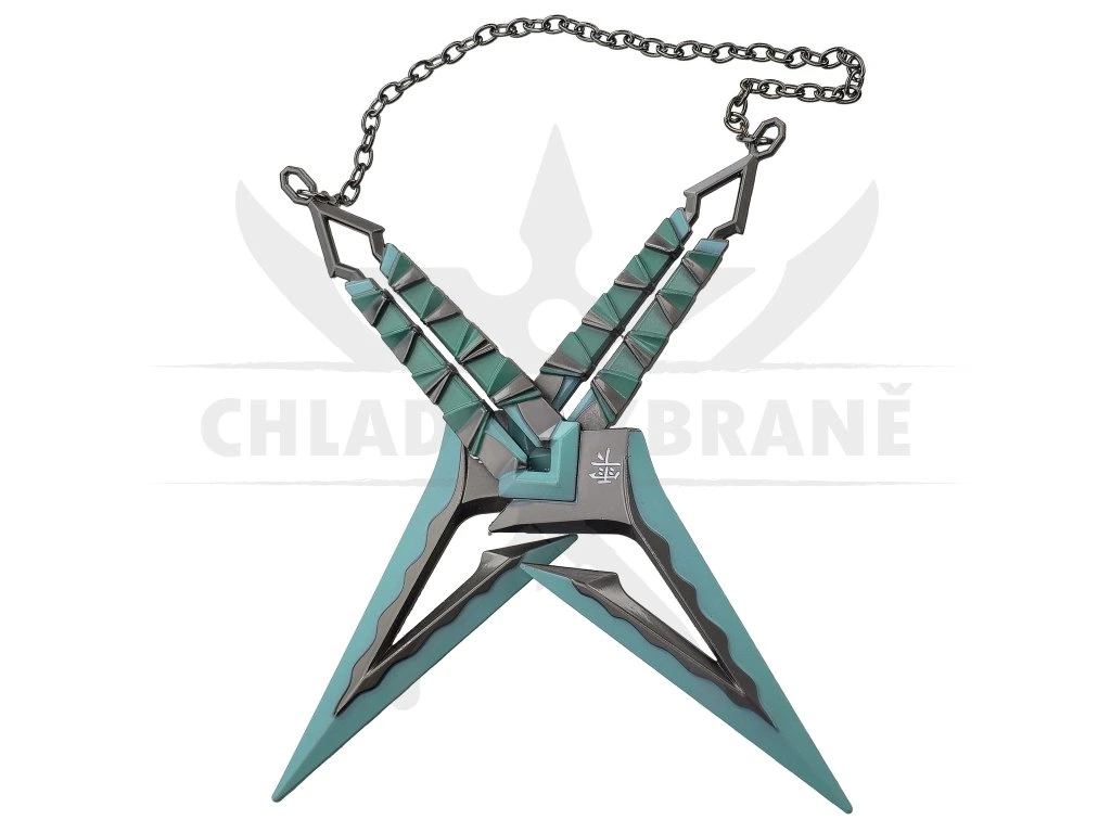 Přívěsek Kuronami Blue převádí do reálné podoby dvojici kunaiů inspirovaných skin linkou Kuronami ze hry Valorant. Barevné kovové provedení doplněné fialovými detaily působí elegantně, ostře a zároveň dost výrazně na to, aby tenhle kousek vynikl ve sbírce i mimo ni. Díky dvojitému zpracování spojenému řetízkem má celý přívěsek výraznější charakter než běžné herní doplňky a na první pohled připomíná stylovou mini repliku.