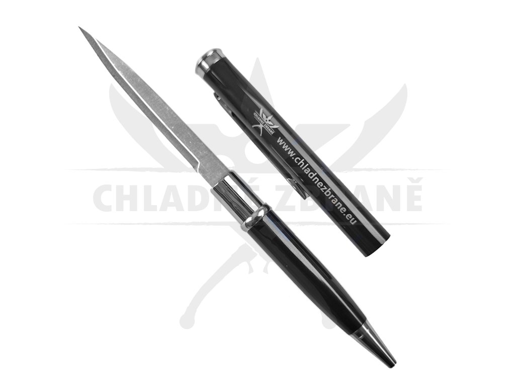 Propiska s nožem má elegantní vzhled černé barvy. Otevírá se klasickým pootočením spodní části a právě tehdy vyjede z propisky tuha na psaní. Čepel je skrytá v horní části a pro její odhalení stačí jen silněji zatáhnout za tělo propisky. Jehlovitá čepel je poměrně ostrá, žádná hračka!
