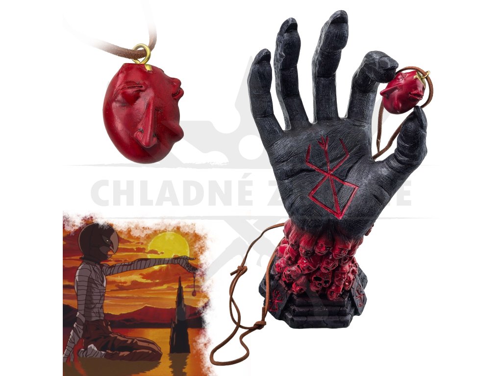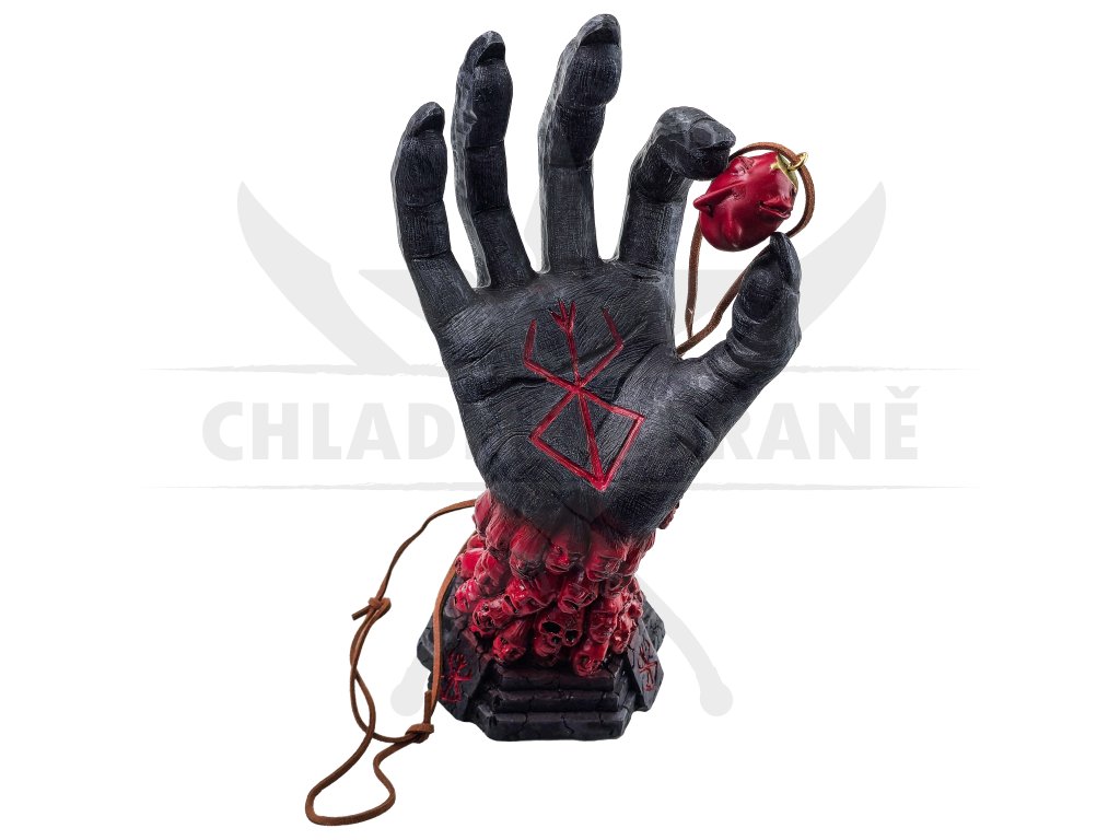 Výstavní soška God Hand, která je inspirována legendárním anime/mangou BERSERK. Tato jedinečná soška je vyrobena z kvalitní pryskyřice a její rozměry dosahují 25 cm. God Hand není jen obyčejnou soškou, ale může se stát i luxusním držákem na šperky. Jeden takový šperk je i v balení a to v podobě náhrdelníku, na kterém visí Beherit.