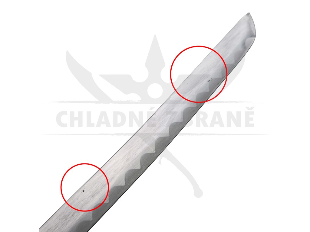 Katana nedrží pevně v pochvě, na čepeli jsou výrobní kosmetické vady, viz foto 2.-4.