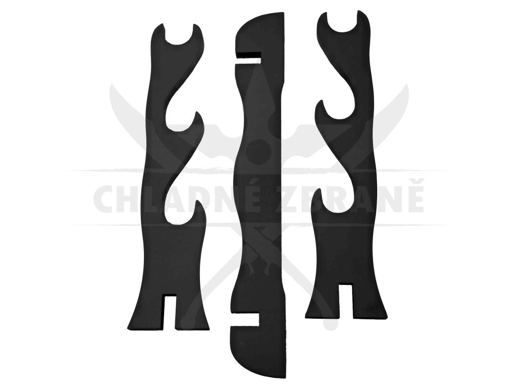 Čepele mečů jsou vyrobeny z karbonové oceli a nejsou ostřené, což je ideální pro bezpečné vystavení nebo cosplay. Záštity jsou kovové a detailně zpracované podle předlohy, rukojeti opletené tradičním stylem. Dřevěné pochvy odpovídají barevnému provedení jednotlivých katan. Balení obsahuje i jednoduchý dřevěný stojánek, díky kterému si můžeš své meče vystavit přesně tak, jak to odpovídá Zorově legendě.